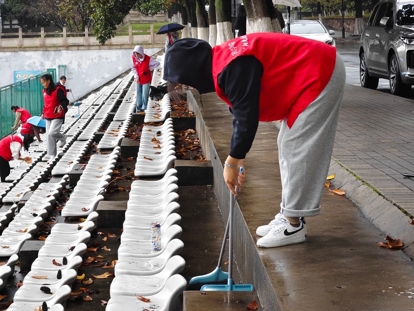 阳光清“尘”志愿服务活动是由DB彩票 青年志愿服务大队联合校后勤保障处共同开展的一系列校园清洁工作。本活动聚焦于师生日常休憩、观赛的公共区域——卫岗校区田径场看台,旨在通过组织同学们擦拭看台座椅、清扫看台垃圾,为全校师生创造一个更加清爽、舒适的户外环境。活动不仅美化了校园,更在实践中强化了同学们的劳动观念与奉献精神,将爱护校园、服务他人的理念落到实处。