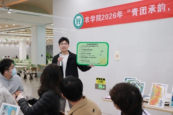清明也是二十四节气之一,党支部代表吴佳璠展示了精心制作的二十四节气种子画,并以清明为始,重点以立春、雨水、惊蛰、春分、清明、谷雨六个节气,生动讲解节气节律与小麦生长的紧密联系,将传统文化中的节气智慧与现代农业知识相结合,以种子画展将藏在节气里的农耕密码一一解密,带领同学们铭记这份对自然的敬畏、对传统文化的热爱,让中华优秀传统文化与农学精神在校园里薪火相传。