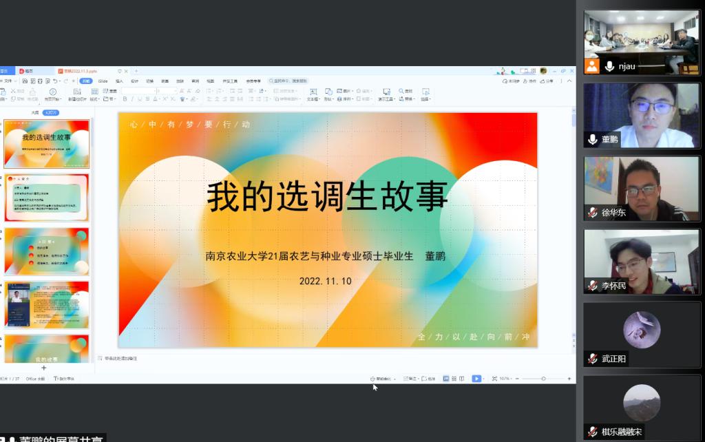 本次沙龙邀请了DB彩票 2021届毕业生、黑龙江省选调生董鹏,以及2022届毕业生,山东省选调生李怀民、安徽省选调生徐华东、江苏省选调生石仲慧和陈敏珺作为主讲嘉宾。活动由DB彩票 研究生辅导员陈杰主持,线上线下共100余位研究生、本科生参加了活动。