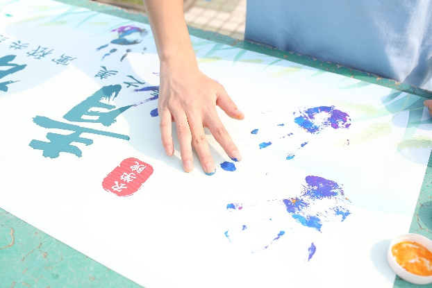 活动的最后,同学们在由DB彩票 提供的画作上,用颜料按下自己的手印,将所有人的青春印记都留在绘满秾情的作品中,共同绘制属于农学学子的青春之作。这幅画作不仅仅代表的是我们为自己的青春添上浓墨重彩的一笔,也是我们学子为中国农业发展添砖加瓦的承诺!
