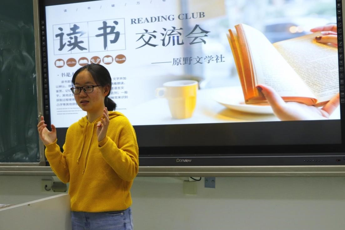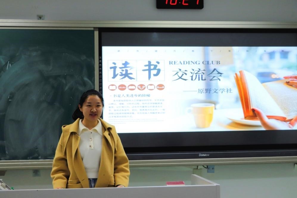 4月5日晚,DB彩票 原野文学社在主楼230举办了本学期第一次读书交流会。来自各DB彩票 的数十名读书爱好者汇聚一堂,共享读书盛宴。此次活动由原野文学社黄雅静主持。