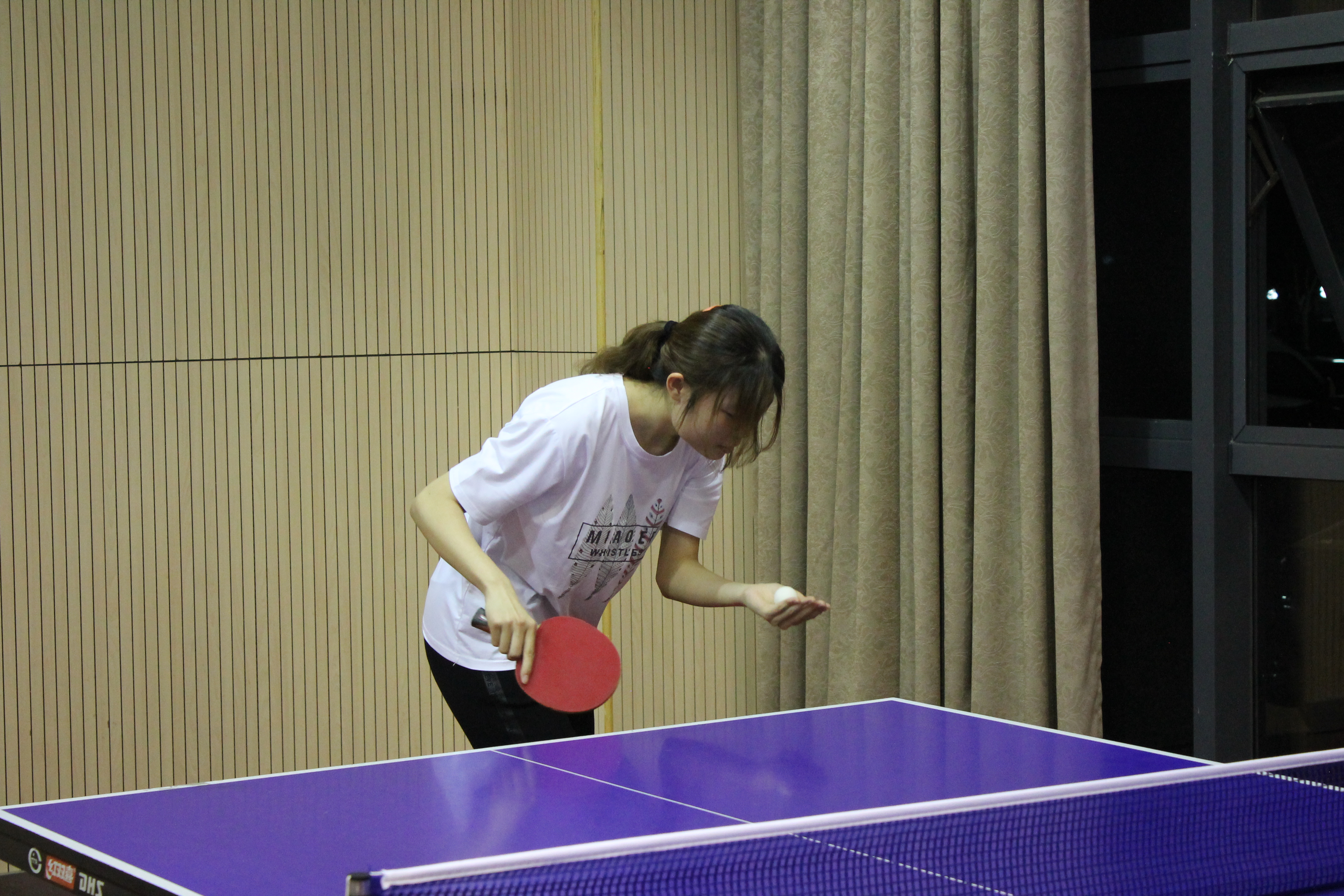 4月22日晚6:50,女子参赛选手陆续到达乒乓球馆进行比赛前的热身。7点,比赛正式开始,小组之内进行循环赛,最终进入八强的选手分别是A组的马钰迪、黄薇;B组的牛宇星、尹璐;C组的朱雪爱、吴秋洁;D组的陈瑶、周奥妮。之后进行四强淘汰赛,经过比拼,进入四强的分别是马钰迪、朱雪爱、周奥妮、陈瑶同学。经过激烈的半决赛和决赛,获得前三名的同学分别是马钰迪、周奥妮、朱雪爱同学。