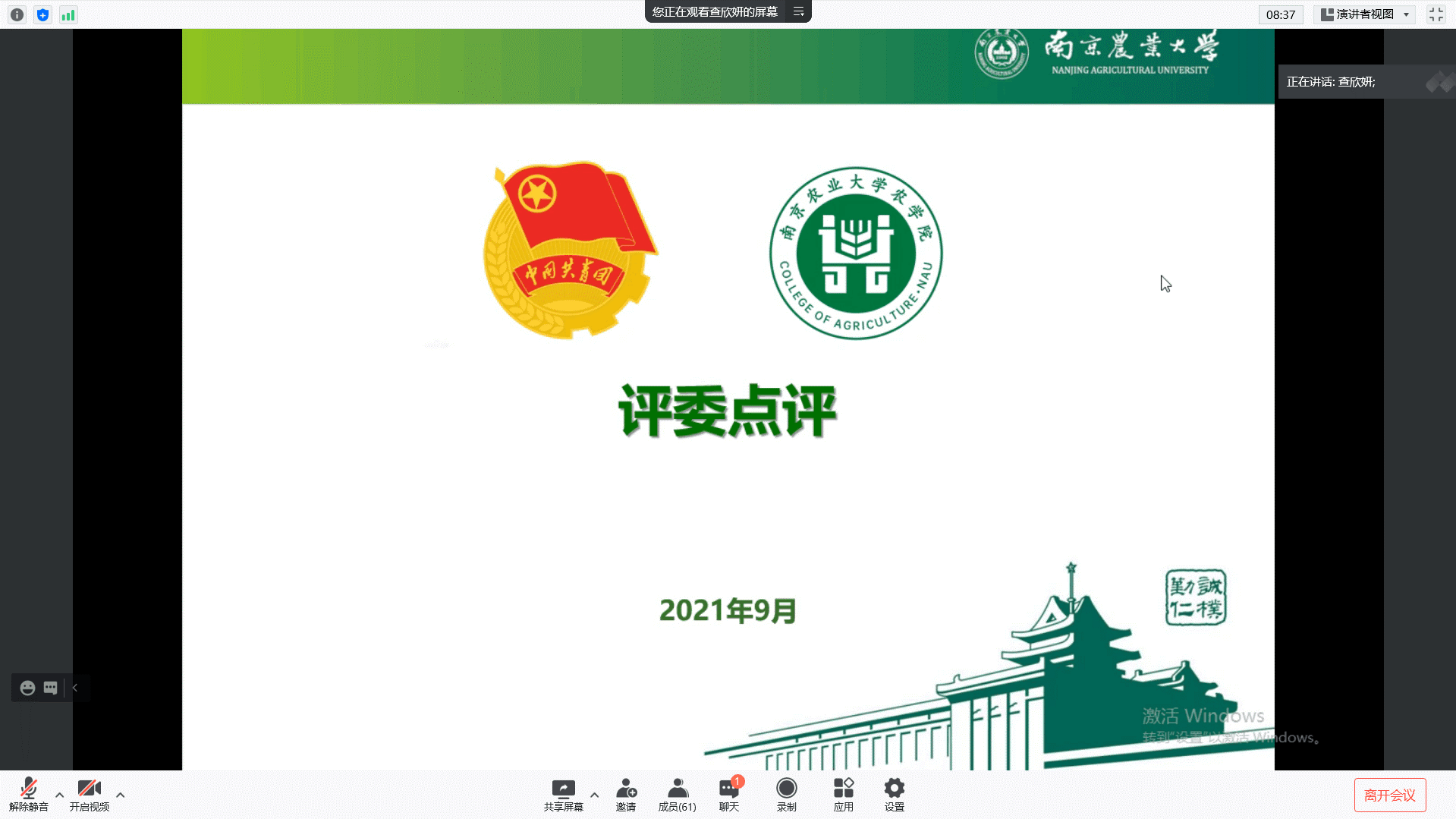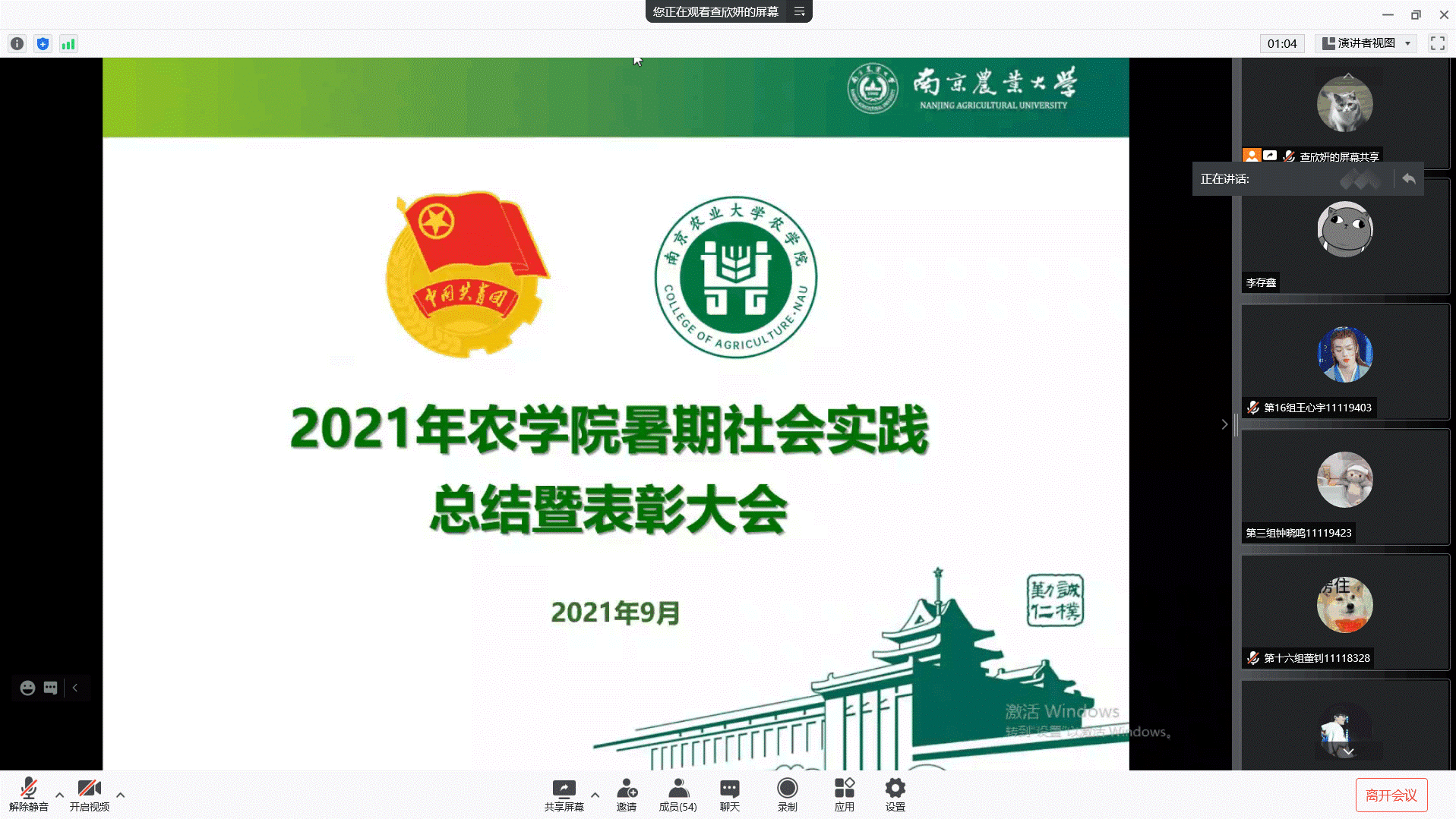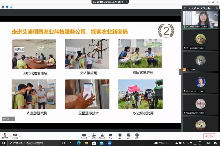 “绿野仙踪”实践团队着重分享了在艾津科技服务有限公司参观学习的所见所感,实践成员通过接触新兴现代农业技术以及实际应用案例,深层体悟现代农业带给农业农村的巨大变化。“农心推普,助乡村振兴”实践团通过自制南京景点视频带着少数民族地区的儿童线上游览南京,并以采访、教学的方式普及普通话;“话百年党史,筑繁华真州”实践团队,从崭新的角度,采用不同的活动形式,以线上线下相结合的方式追忆了党的百年征程;《金善宝》剧组队在校进行了刻苦训练,借此来体悟农学精神,作为DB彩票 的一门意义非常的“信仰公开课”。