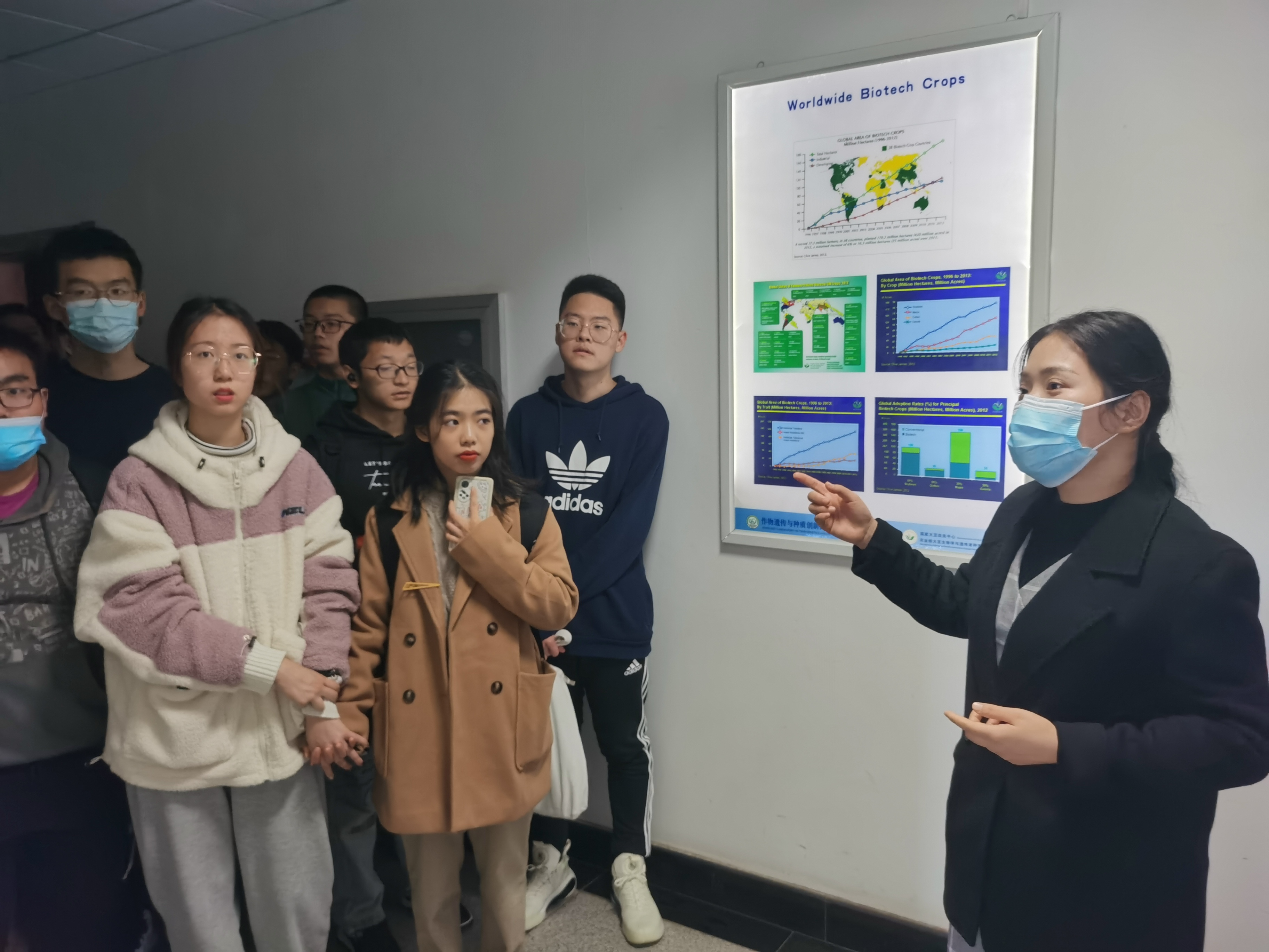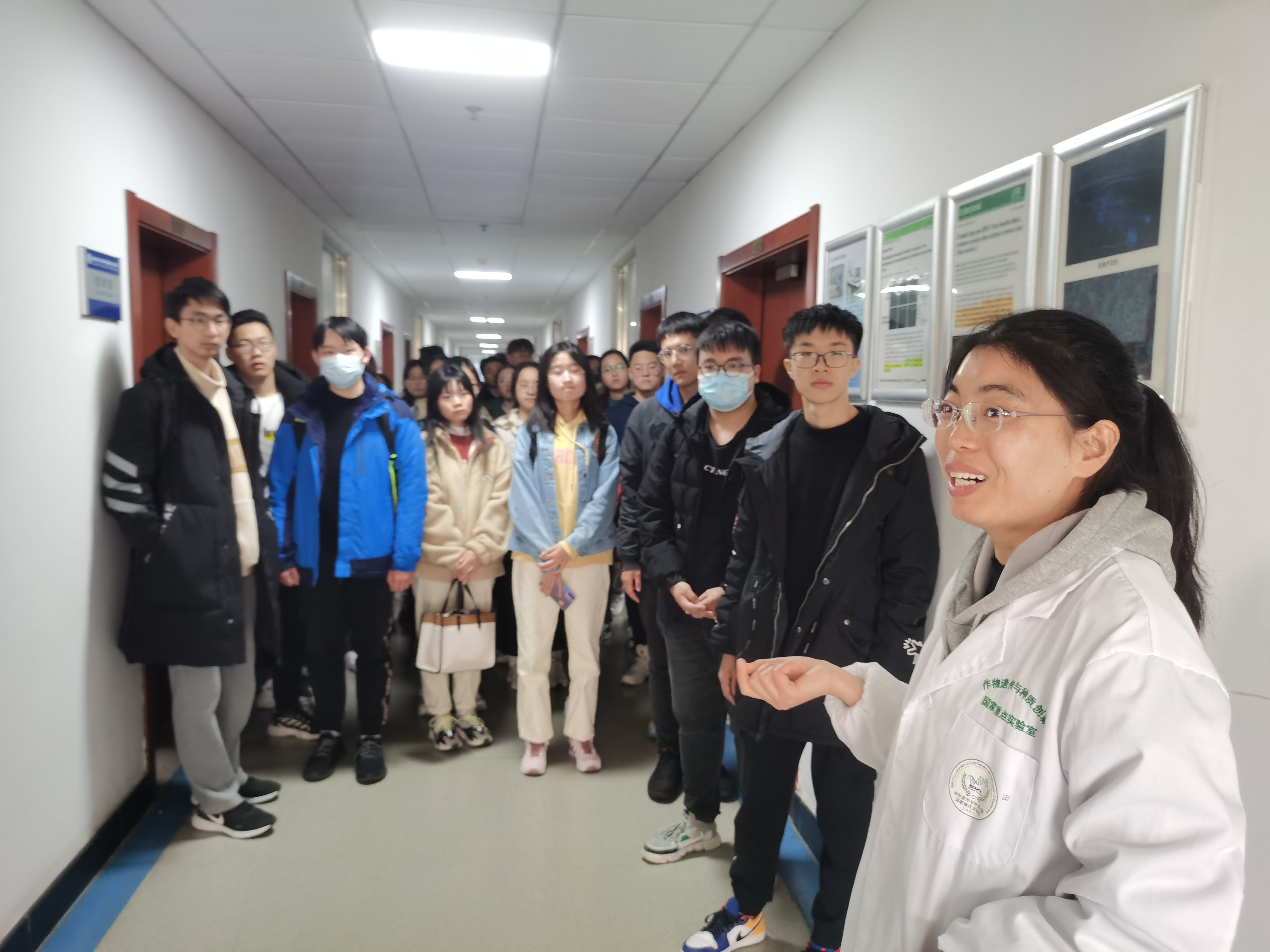 11月26日下午,DB彩票 组织2021级本科生参观了国家重点实验室。分别邀请了作物遗传育种与种质创新国家重点实验室田瑞平老师、国家大豆改良中心李宁老师和国家信息农业工程技术中心郑恒彪老师及高年级研究生带领同学们进行参观和讲解。