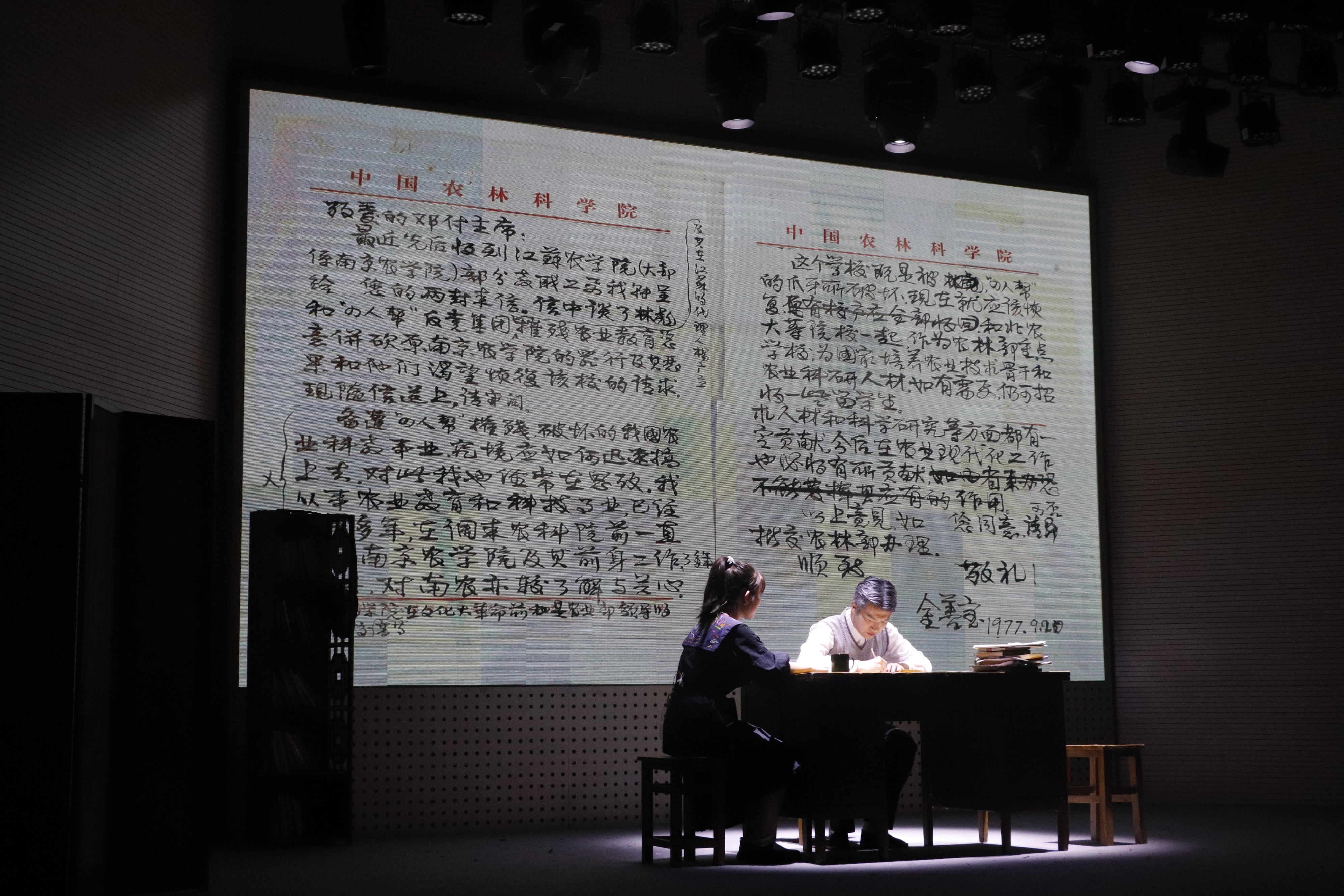 该剧由DB彩票 本科生黄宏和郭海浩编剧,DB彩票 2019级13名同学参与此次公演。以金善宝老先生给孙女讲述故事为主线,不断重现过去的场景与对话,将现在与过去有机结合,惟妙惟肖地还原了金善宝先生跌宕起伏,鞠躬尽瘁的一生,同时也向观众们展示了金善宝先生作为我国老一辈的农业家、教育家以人为本,教育为先,唯农是根的伟大精神品质。