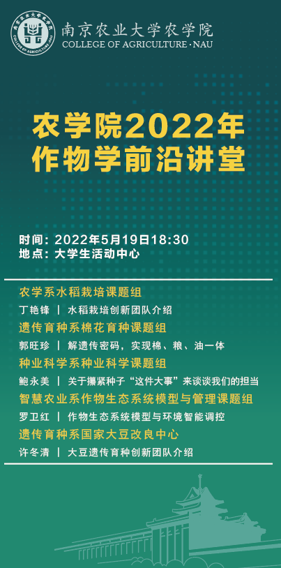 预告|DB彩票 2022年作物学前沿讲堂(第一期)