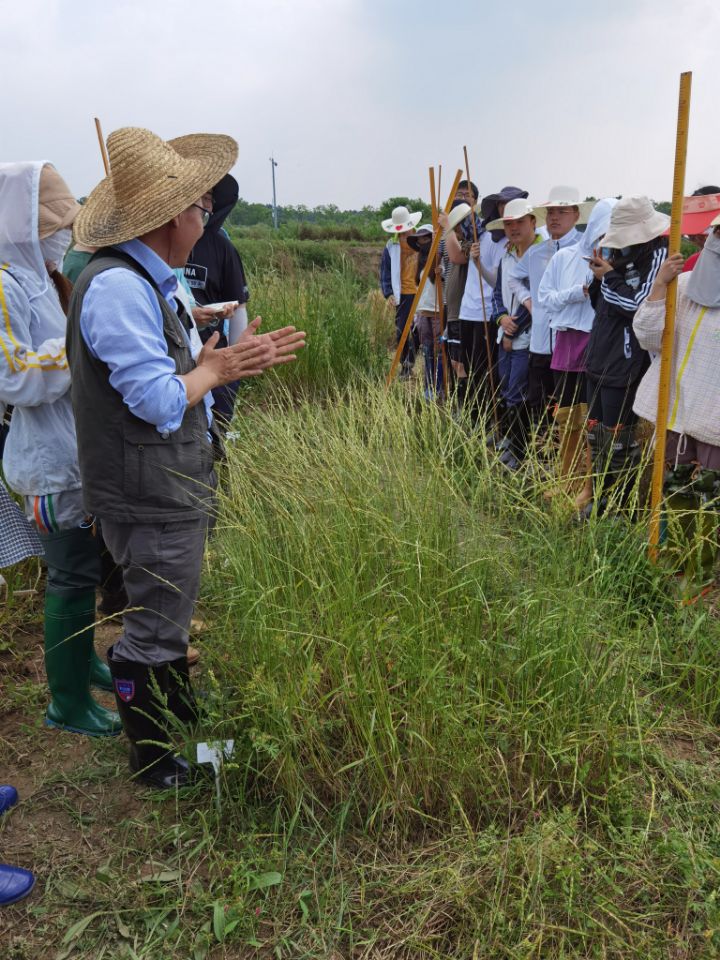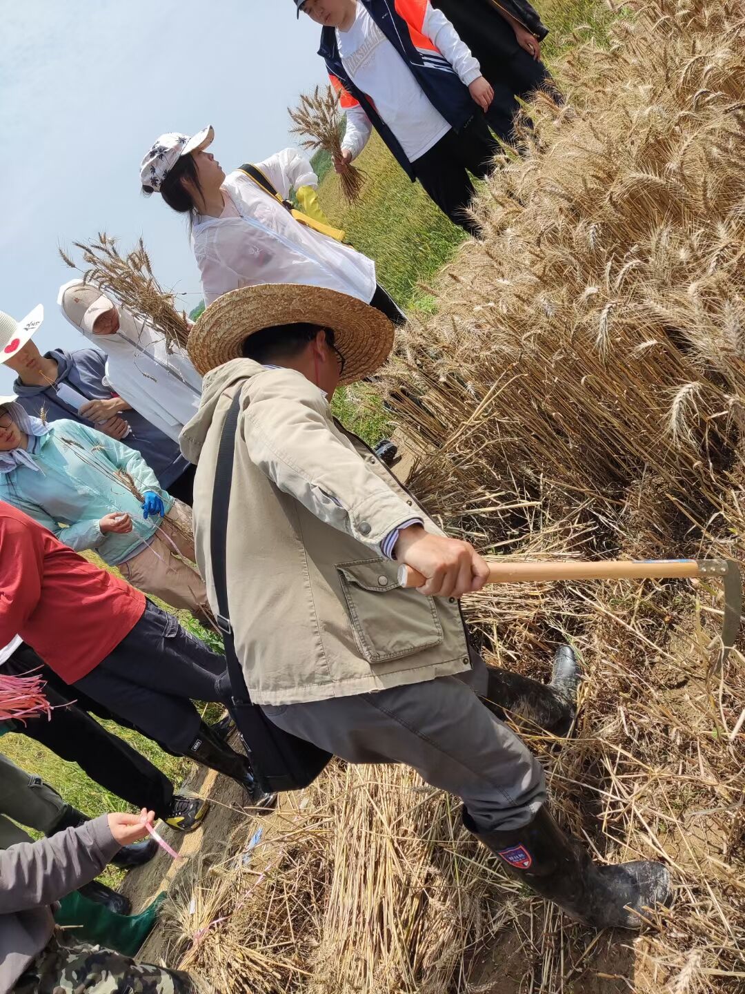 在本次实习中,同学们不仅学到了很多知识技能,也从中获得了许多感动,倍受鼓舞。老师们在教授实验要点的同时,也向同学们传递着对农业的热爱和责任感使命感。负责小麦育种实验的亓增军老师便成为了同学们中的“偶像”,他不知疲倦地在田间走了一遍又一遍,为一群又一群同学讲解每个小麦品种的优点和故事,如数家珍。他将小麦进化史形容为跨越万年的爱情故事;他在示范割麦子时,不愿意放下镰刀,说这是“丰收的喜悦”,割得上瘾......这样的热爱与爱农助农的情怀给同学们带来了很大启发和动力。