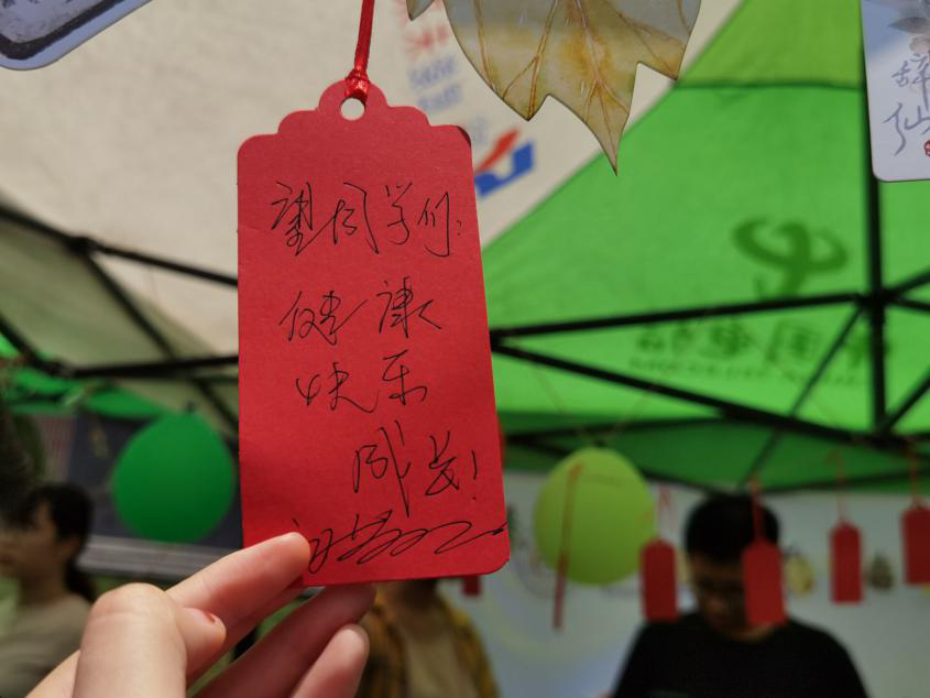 在活动过程中,DB彩票 本科生辅导员孙小雯向前来参观的领导、同学介绍了DB彩票 开展的系列心理健康教育工作,并介绍了现场布展和活动设计的意义,DB彩票 党委副书记受邀为同学们在红色卡片写下了“望同学们健康、快乐成长”的寄语,殷切希望同学们身心健康,乐观面对生活中的小挫折,学会正确对待、处理问题,健康、快乐地成长。