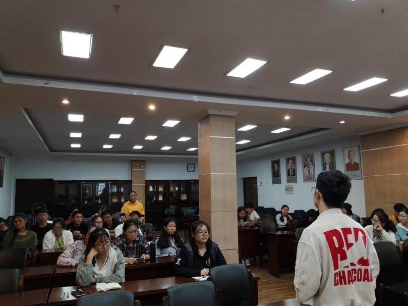 整场讲座在韩忻俊老师简练精辟的自我介绍中拉开帷幕。在正式进入正题前,他对自己的大学成长经历娓娓道来:从刚入南农的青涩,到大三成为培训机构校园代理,并在毕业前于大活举办南农历史上唯一一场个人演唱会,韩老师用自己的鲜活事例佐证了自信对于同学们成长的必要性。言归正传,韩老师从“学好英语”“学好专业课程”“培养兴趣爱好”“看书提升眼界”“培养个人风格”“制订人生长远目标”等六个方面为同学们的升学发展及未来规划提出建议,同学们认真聆听。