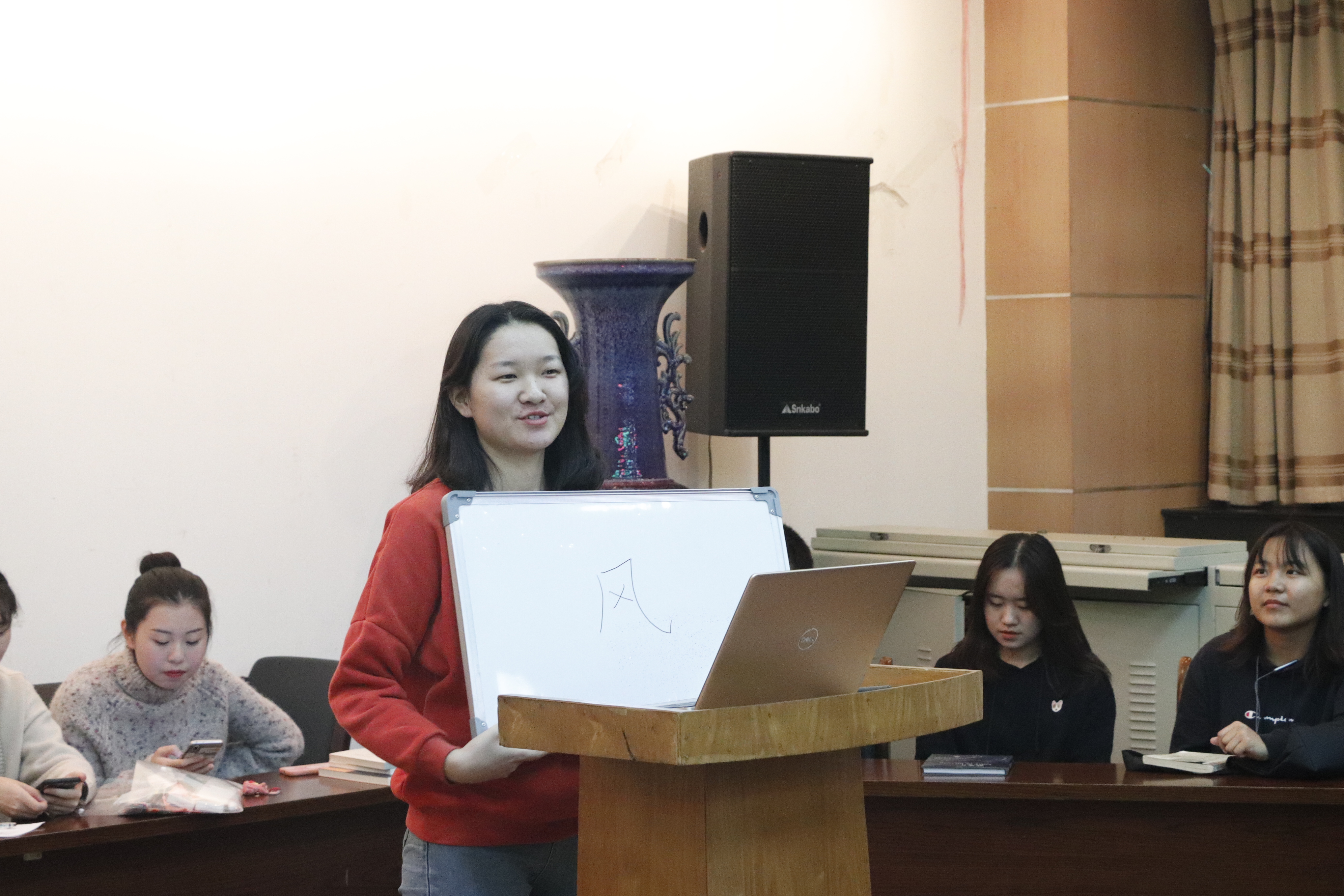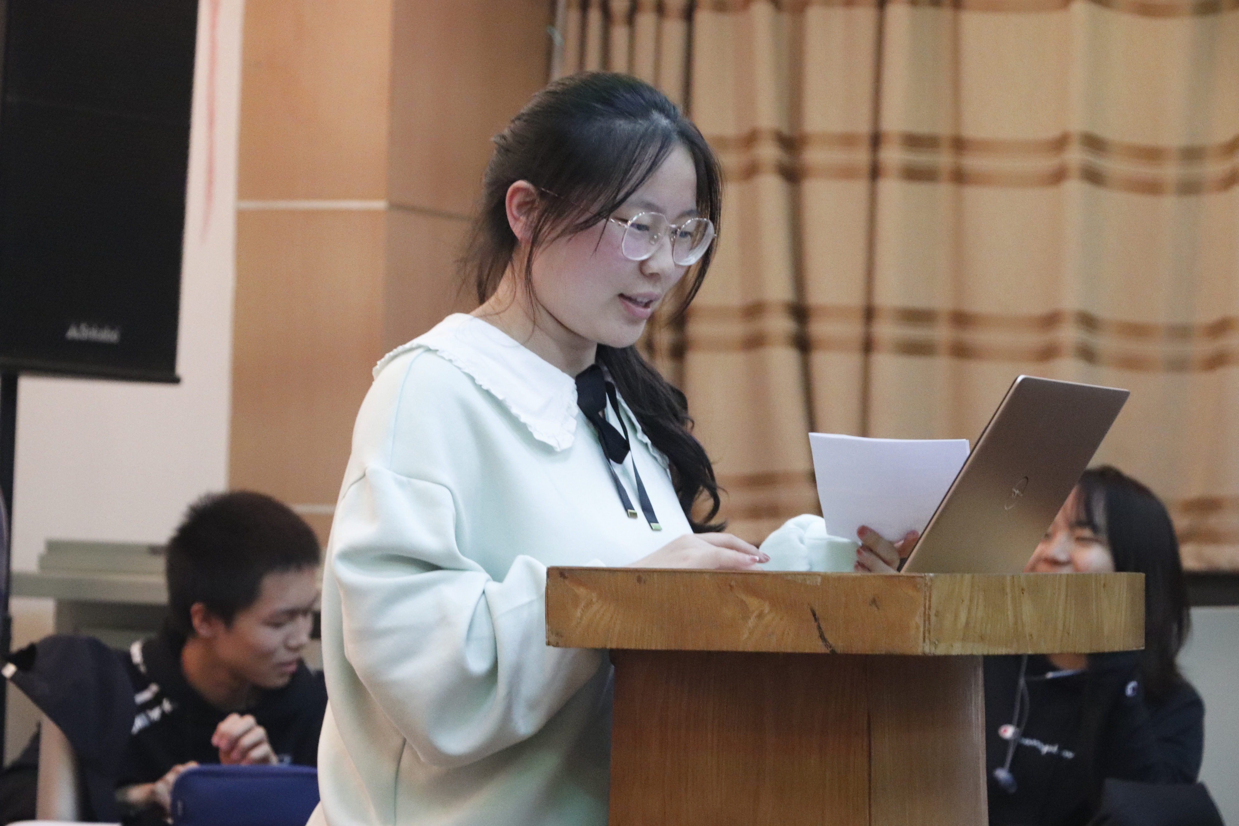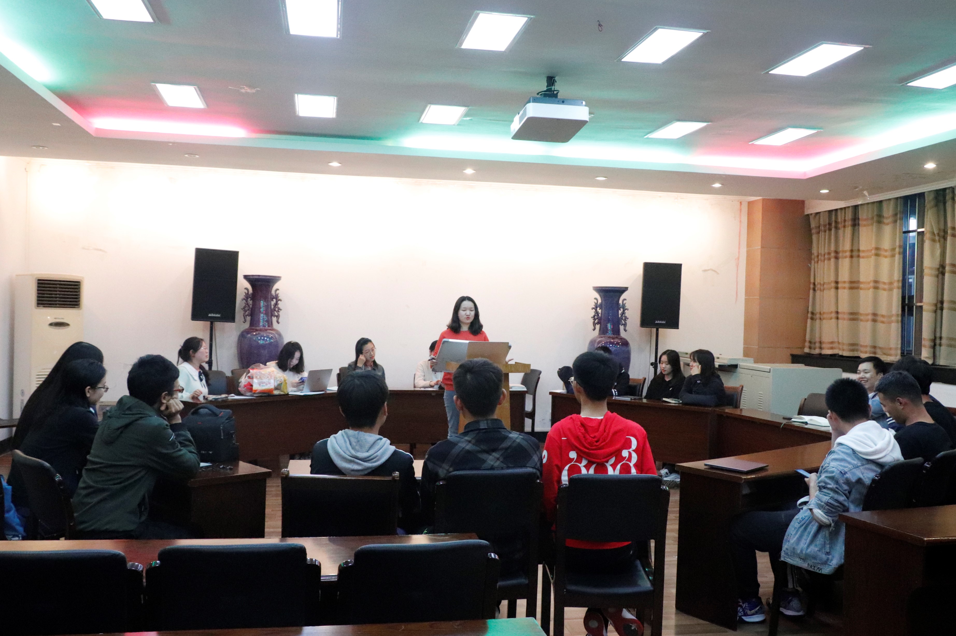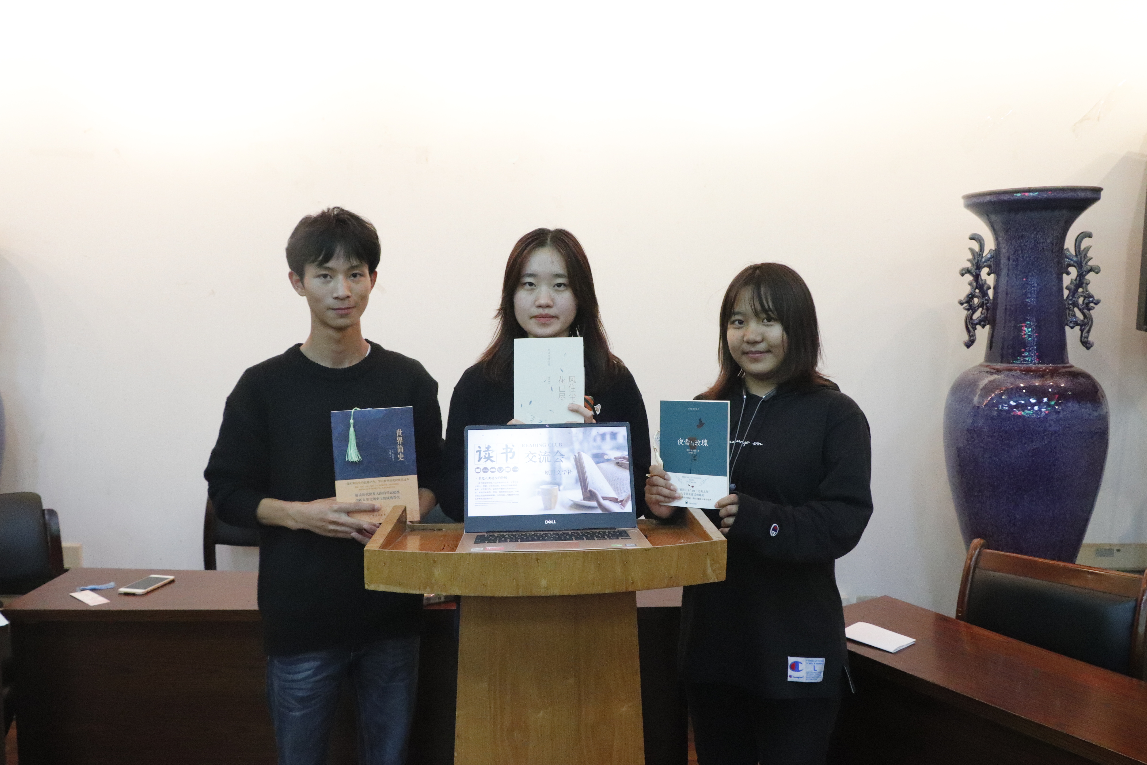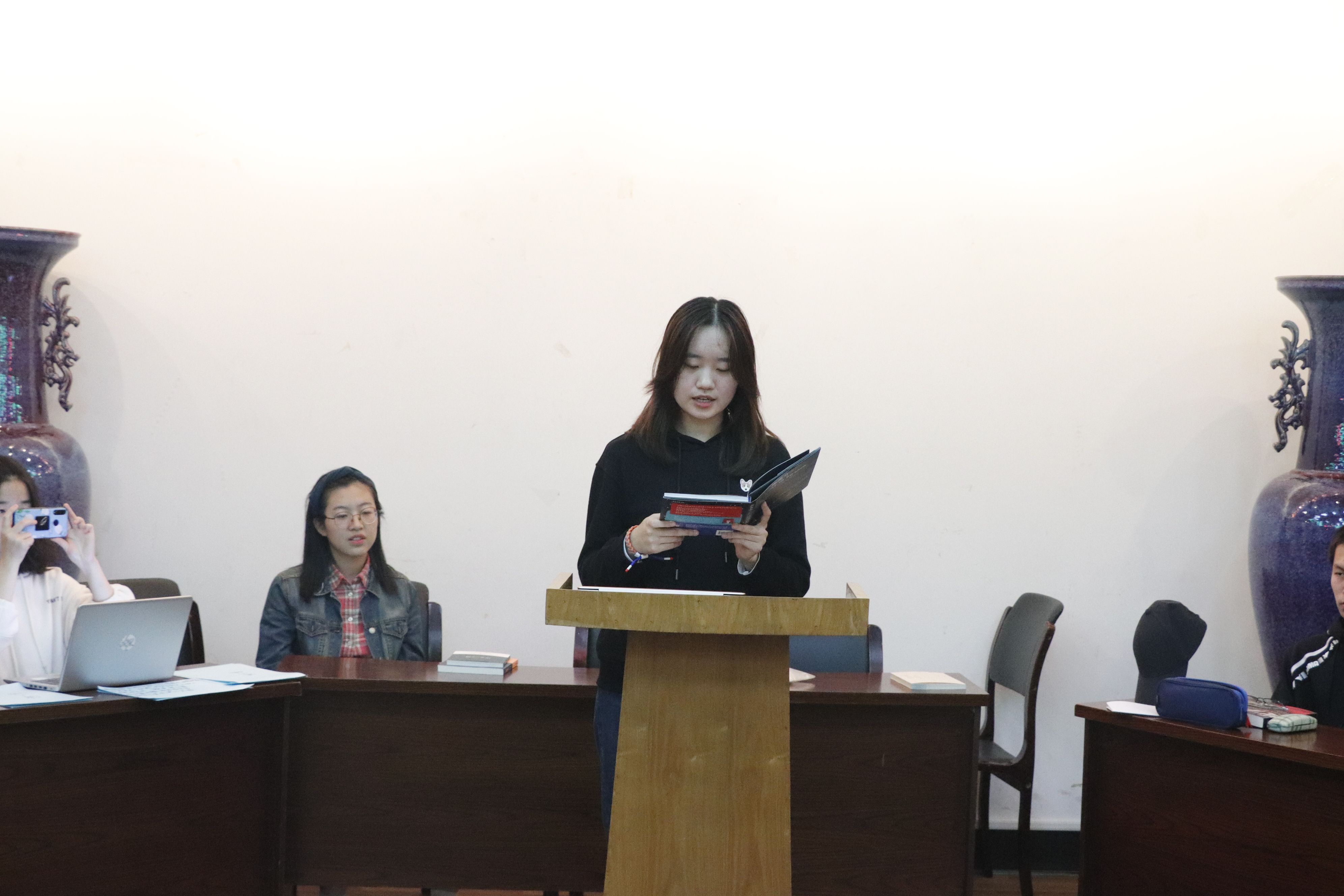 接下来是书籍分享环节。同学们依次上台讲述自己的读书经历,并进行好书推荐。每个人的分享都十分精彩,个人见解独到,内容丰富,讲解生动。