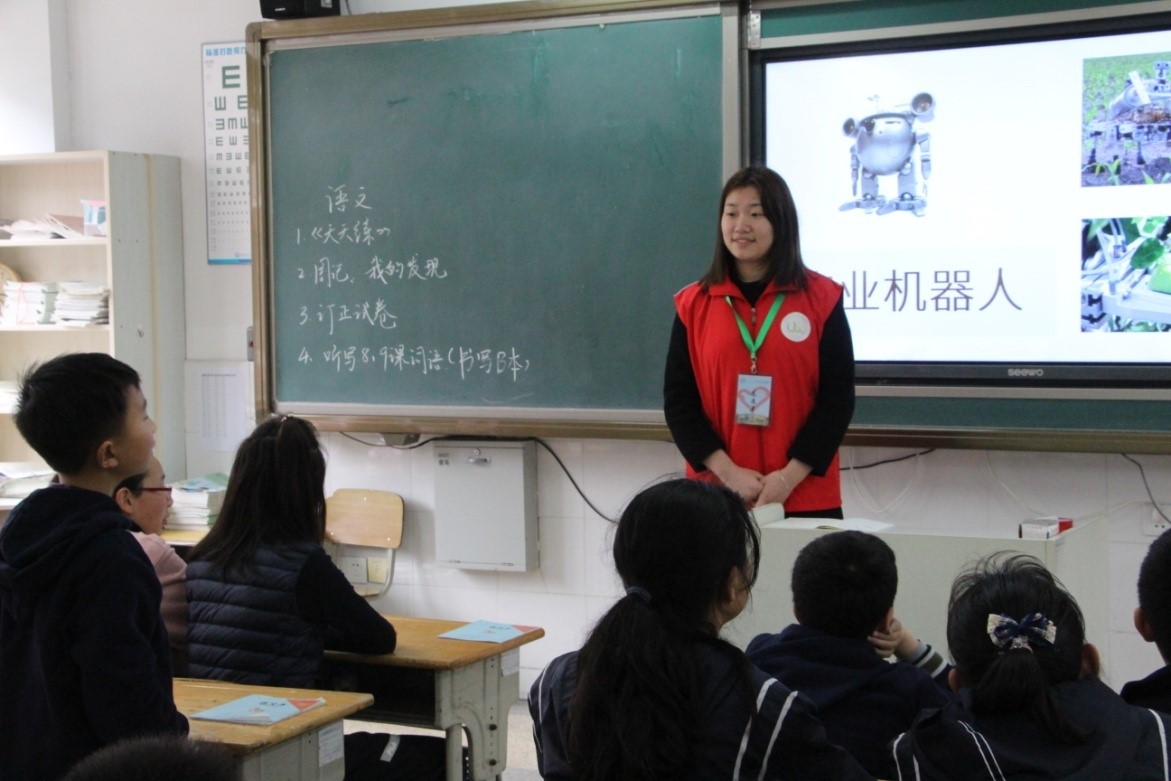 3月29日下午,DB彩票 青年志愿者大队的负责人和6名志愿者在南京理工大学实验小学四年级(3)班教室,开展了新一学期的“稼穑少年”科普课堂志愿活动,约30名小学生参与了本次课堂活动。