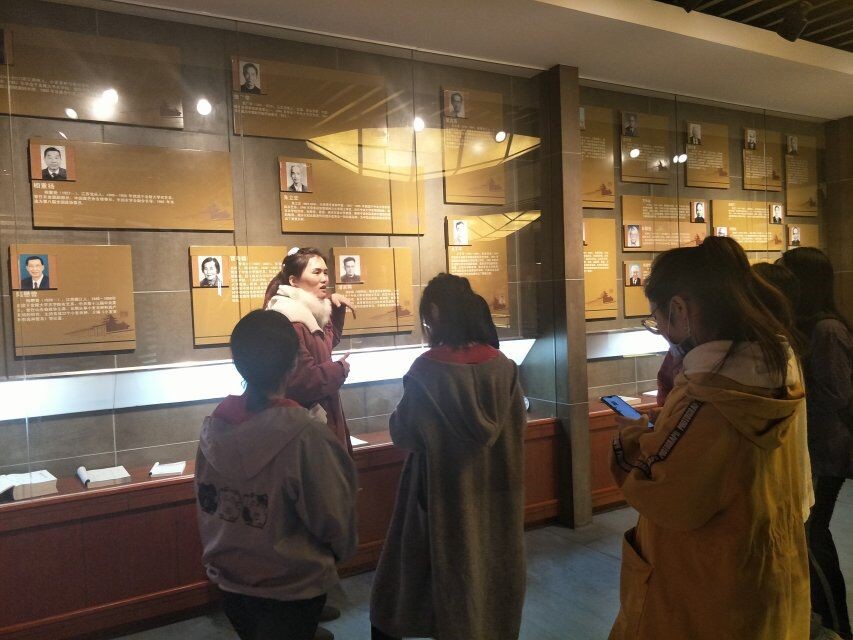 接下来,夏老师带讲解员们参观校友馆展区,结合各展区的位置、内容等特点进行讲解示范,逐一指导解说时的手势、站姿、语音、语调、讲解线路、讲解重点等细节。