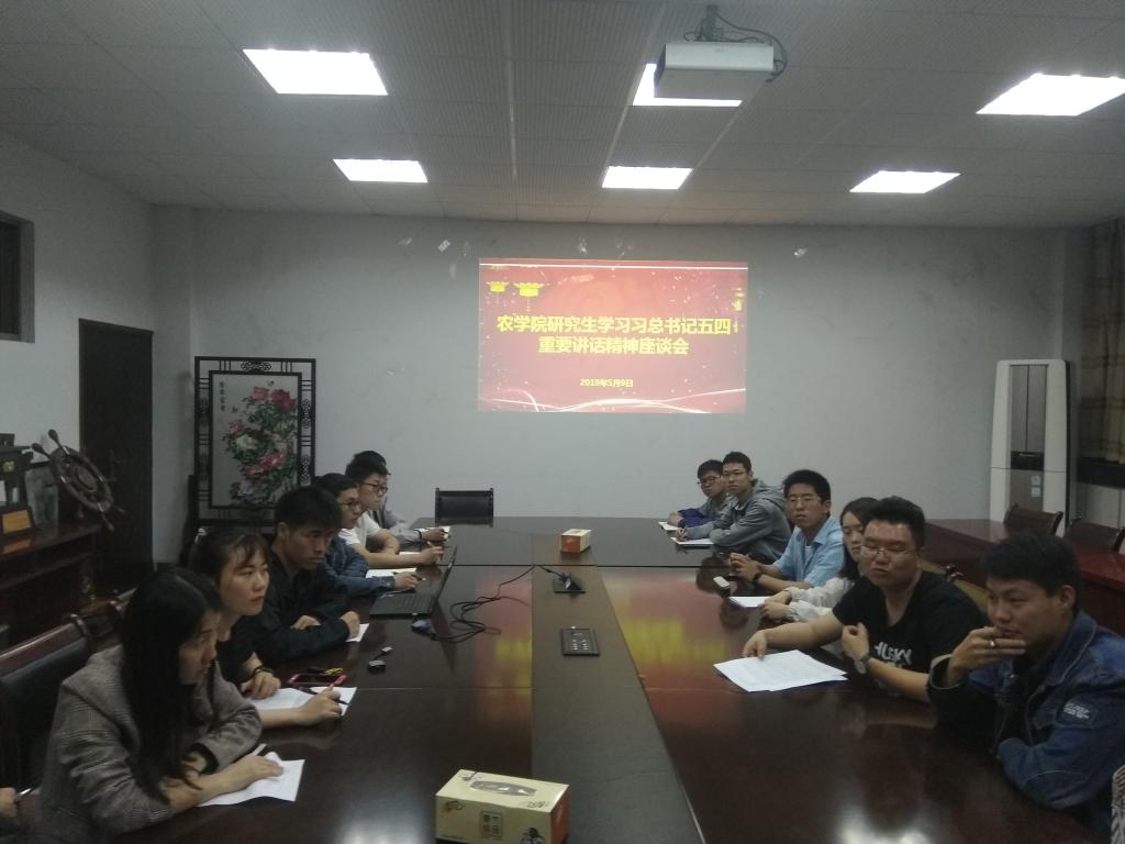 5月9日晚上,DB彩票 在生科楼B1013会议室组织开展研究生学生代表学习习近平总书记纪念五四运动100周年大会讲话精神座谈会。