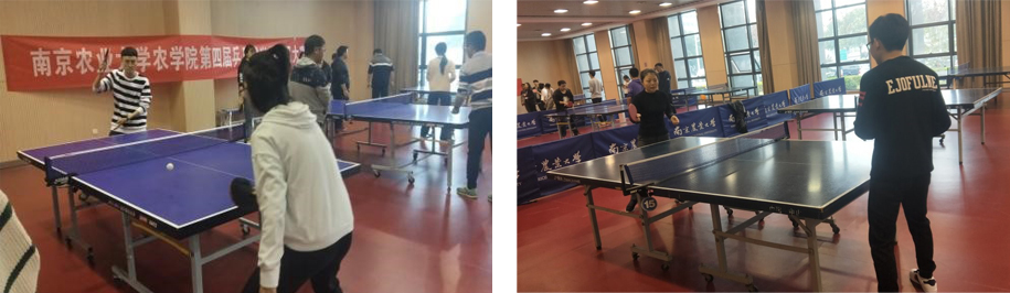 上午9:00,各联队抽签进行淘汰赛赛,采取五局三胜制,运动员们个个集中精神,充分投入紧张而激烈的比赛。同时,个人赛也在紧张的进行中,辅导员马丽娟老师也参加到比赛中,与运动员们共同竞赛。