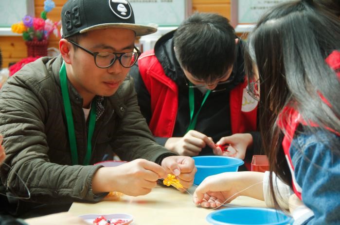 下午1点,二十七名志愿者在DB彩票 南门集合,步行前往月牙湖残疾人手工坊。到达手工坊后,残疾人阿姨细心教导志愿者们编织手工艺品,并向志愿者们讲述了月牙湖街道“残疾人之家”的故事。