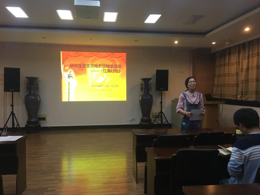 2018年4月3日,DB彩票 研究生党支部在生科楼E1001召开了本月第一次民主生活会。本次生活会以电影放映室为主题,观摩爱国主义热血电影《红海行动》。活动由研究生农学系研究生第一党支部承办,支部书记王琪主持。