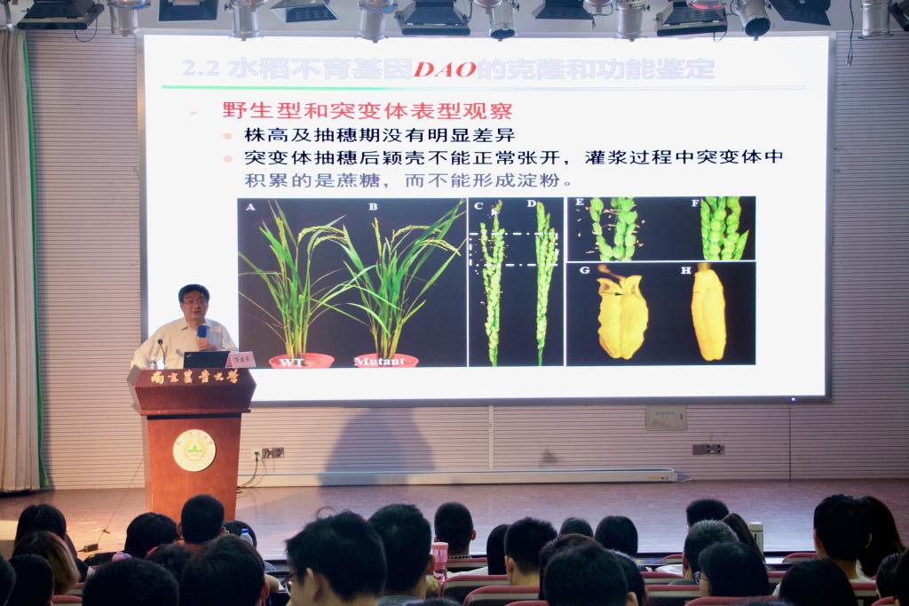 万建民院士从我国的粮食安全、生态安全及营养健康的角度出发,详细分析了我国水稻生产存在的重大问题,并指出了水稻遗传育种面临的挑战。万院士对深奥的科学问题进行了深入浅出的阐述,他生动幽默的讲解赢得了同学们的阵阵掌声。此外,万院士还鼓励同学们要“干一行,爱一行”。不要对农业这个行业存在偏见,其实农业在未来将大有作为。最后,他表示欢迎同学们加入水稻研究实验室,共同为我们的农业做出贡献。