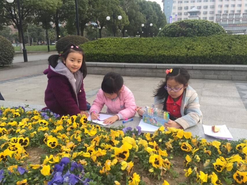 3月13日,小绿叶课堂在逸夫楼南广场正式开始。四点半老师们陆续把孩子交到志愿者手中。志愿者身穿绿色志愿者服装佩戴志愿者证,期间志愿者们还准备了蜡笔、彩色铅笔、卡纸以供小朋友们画画。