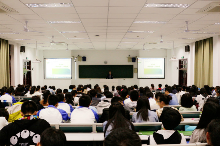 10月13日晚,DB彩票 于主楼133召开“新生十课”入学教育。DB彩票 学生会主席仲开泰主讲。2016级全体学生参与活动。