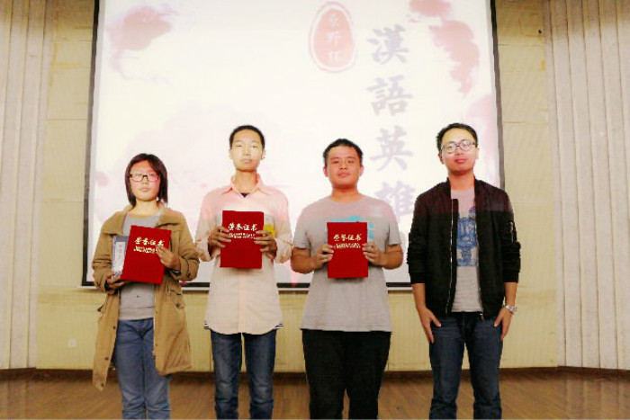 在一轮一轮的比拼淘汰后,产生了本次“原野杯”汉语英雄大赛的前三名:第三名农学162班,第二名植物实验161班,第一名农学163班。最后本科生辅导员姚敏磊和原野文学社社长包梦梅为获奖班级颁奖。