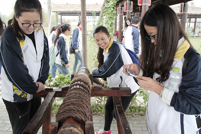 最后参观人员来到苏州市董浜镇泥仓溇湿地公园。原生态的公园内风景优美,空气清新,往来的游客络绎不绝。公园内多处景点展示了古代劳动人民的耕作工具及方式。许多同学都是第一次见到这些农具,都好奇地上前尝试使用。