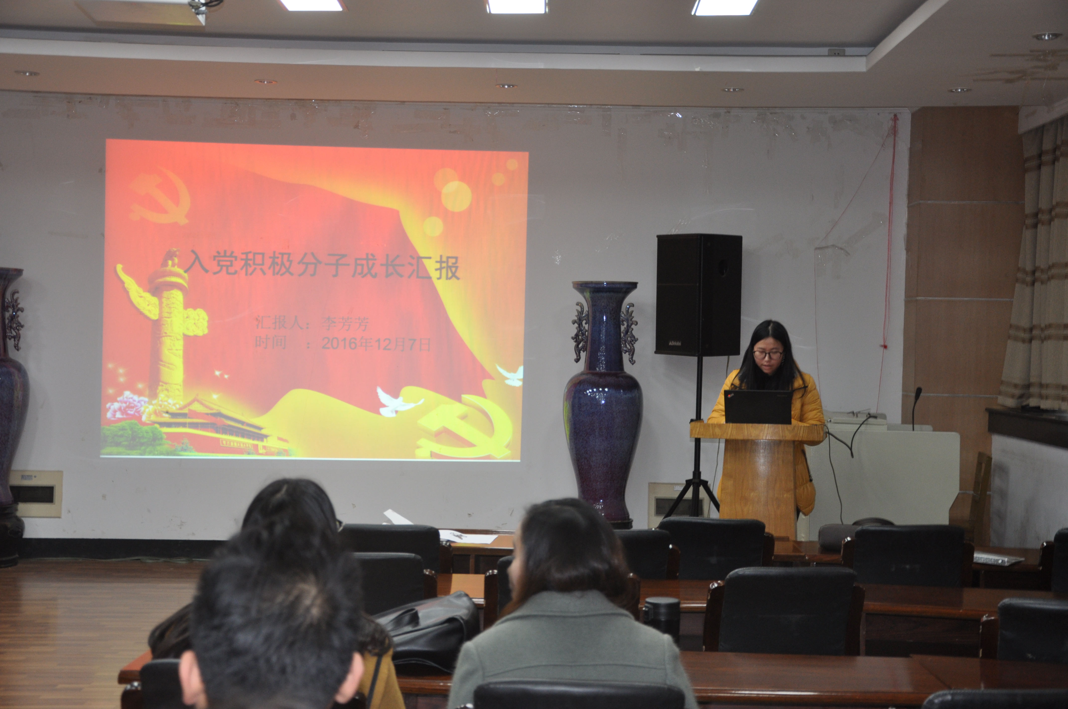 研究生分党校在生科楼e1001举办了入党积极分子和预备党员的成长汇报会。此次汇报主要针对考察期满一年的同学,共有35名同学参加了本次汇报,其中积极分子29名。此外,我们有幸邀请到了院党务秘书马丽琴老师,研究生辅导员、创业协同中心秘书汪欢欢老师出席。同时研究生各党支部的书记、副书记也参与了本次活动,对汇报的同学进行打分、评价。