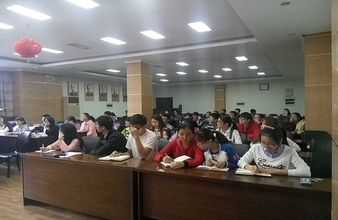 1 0月14日中午,DB彩票 在生科楼报告厅开展了第八届运动会裁判培训工作,会上邀请到了校体育部的徐野老师进行赛前培训。辅导员王彬及各项目裁判员参与了会议。