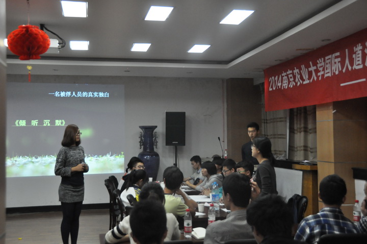 活动开始,有趣的“孤岛游戏”使同学们对国际人道法有了初步的了解。接下来的活动共分为四个单元:第一单元为人道视角,通过观看战争中受伤和死去平民的照片,使大家了解到弱势群体的无助和急于寻求帮助的期盼;第二单元是国际人道法基本规则,让大家开始正式了解国际人道法的内容;第三单元则是一些违反人道法的行为,同学们通过模拟筹建难民营等活动,体验参与国际人道行动的过程;第四单元给大家欣赏了视频《I WAS HERE》,让参与活动的同学心中顿时萌发了人道主义的萌芽。