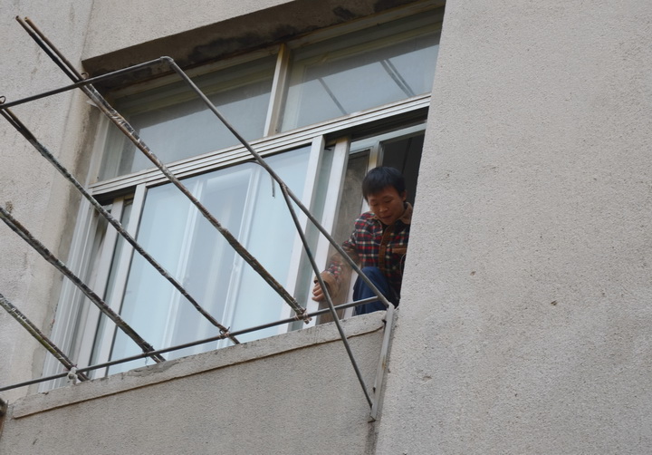 随着前期准备工作的完成,所有参与演习的学生以及工作人员在各自所属的位置上待命,消防车从玉兰路驶向5舍,演习正式拉开了序幕。“火情出现!”5舍416房间的窗户冒出了滚滚浓烟,一名男同学在冒出烟雾的窗口捂住口鼻呼救挣扎试图准备跳楼。这时,火情侦察员拨打了“119”火警电话,并拉响了警报,随后DB彩票 保卫处与校医院的工作人员赶到现场。紧接着,几名消防官兵迅速冲下消防车,铺好消防管道,打开消防栓控制周边火情,另外两名消防员从工具箱内取出担架,带领负责救援的同学,换上隔热服,冲进5舍,进行人员搜救。几分钟后,楼门口有大批学生经楼梯跑出宿舍楼,用毛巾捂住口鼻,成功疏散。随后,两名身穿隔热服的消防队员把一位“受伤”的同学用担架抬出,并配合校医院的医护人员进行现场“紧急治疗”。在确保所有人员顺利逃出楼道,伤员抢救完毕之后,消防演习活动成功结束。