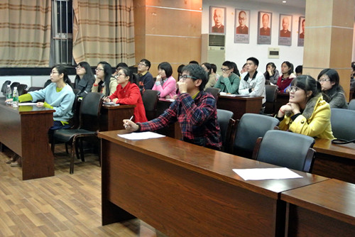 接下来,留学于美国康奈尔大学的陈琳博士介绍了自己的课题,并对康奈尔大学做了简单介绍,紧接着介绍了自己在美国的学术活动及其他活动情况。陈琳博士着重将自己在美国的衣食住行作了具体介绍,并提醒同学们注意美国的生活礼仪。随后,陈琳博士作为代表接受了同学们的现场提问。就同学们最关心的出国英语要求、如何联系导师、如何通过导师考核等问题做出了详细回答。陈琳博士着重指出,在与导师交流的过程中,不能表现得过于卑微,要将自己的自信展现出来,要让老师觉得你有能力进入他的研究团队。