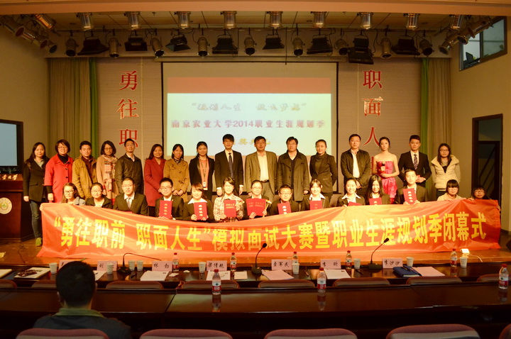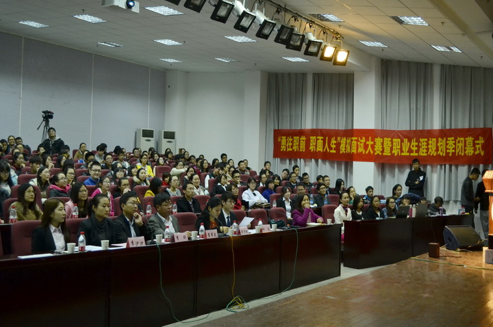 11月19日下午,由校学生工作处主办、DB彩票 承办的“勇往‘职’前,‘职’面人生”模拟面试大赛暨首届“职业生涯规划季”颁奖闭幕式在教四楼报告厅拉开帷幕。大赛邀请了江苏中江种业股份有限公司副总经理查军民、智联招聘(南京分公司)大客户总监梁倩艳、南通正大集团人力资源总监李昕、苏宁云商校园招聘经理林勃、北京东方园林股份有限公司招聘经理李沙沙等企业高管担任本次大赛的评委。学生工作处副处长刘亮、副处长吴彦宁莅临现场,校就业指导中心、部分DB彩票 分管领导和辅导员老师以及来自全校各DB彩票 的200多名同学观摩了比赛和颁奖闭幕式。