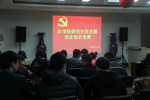 参加此次党史知识竞赛的八个研究生党支部,包括研究生农学系的3个党支部,遗传育种系4个党支部以及种业科学系支部,每个支部由五名同学组成,涵盖了老党员和入党积极分子。比赛为抢答形式,有判断、选择和填空3种题型,答对的同学均会获得一份小礼品,累计得分最高的支部还将获得冠军奖品。最终,农学系第二党支部表现突出,获得冠军。