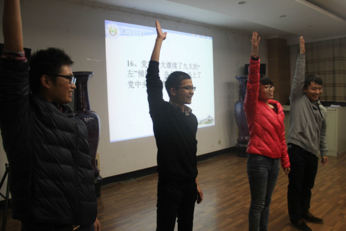 为庆祝党的十八届四中全会顺利召开,呼吁DB彩票 研究生党员积极融入到党的组织生活,11月25日晚7点,DB彩票 研究生党支部在生科楼E1001组织各个支部进行了一次有趣的党史知识竞赛。