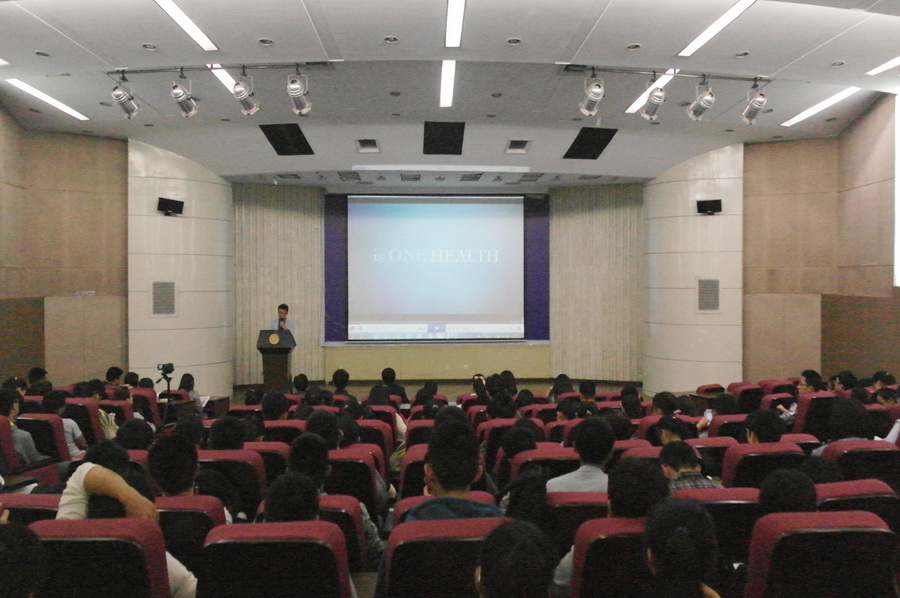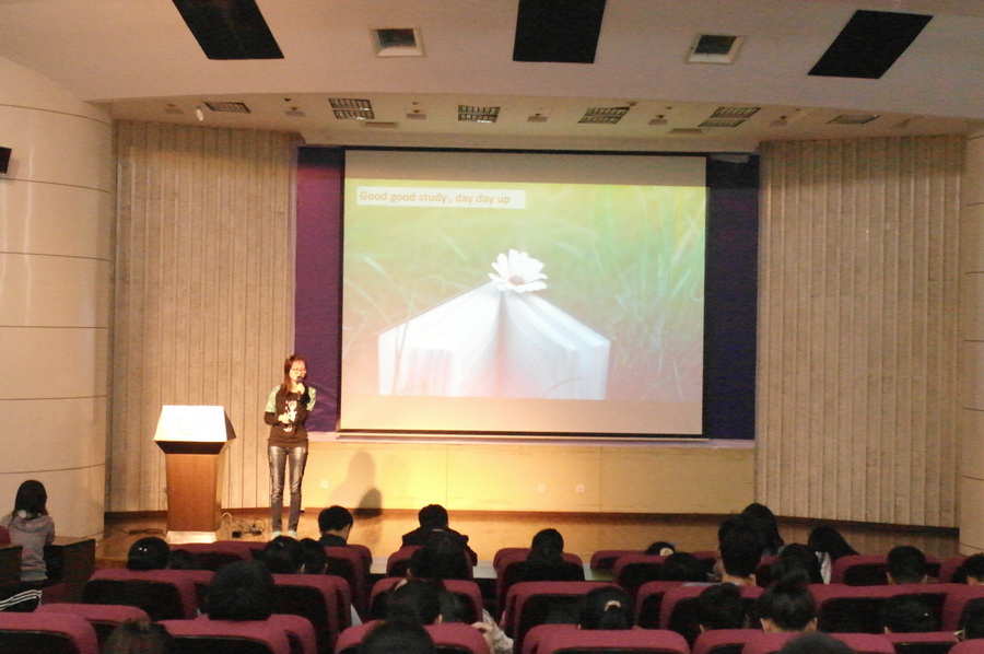 惠帅、曹剑楠、徐霞、王梅月、唐善杰依次上台分享了他们在美国UCD的学习、生活情况。围绕学习,他们给大家展示了UCD的校园风光和课堂情况。高大上的实验室,萌萌哒的小动物,还有充满趣味的学生农场给在场的同学们留下了深刻的印象。曹剑楠学姐畅谈了她在美国的所见所闻,让她重新思考了“农民”这一概念,憧憬了作为新一代准农业技术者的发展计划。在提到课余生活部分,几位学长侃侃而谈,欢快的家庭聚会让同学们纷纷投去了羡慕的眼神。在讲到各自的三餐时,他们或吐槽或赞赏,整个会场顿时充满了欢声笑语,而气势“磅礴”的“南农飞车党”又让大家体味到了游学生活的艰辛和不易。大洋彼岸学习生活不仅给游学的学子们带来了一场不一样的人生体验,同时也鼓舞着在座的同学努力朝着自己的目标奋勇前行。
