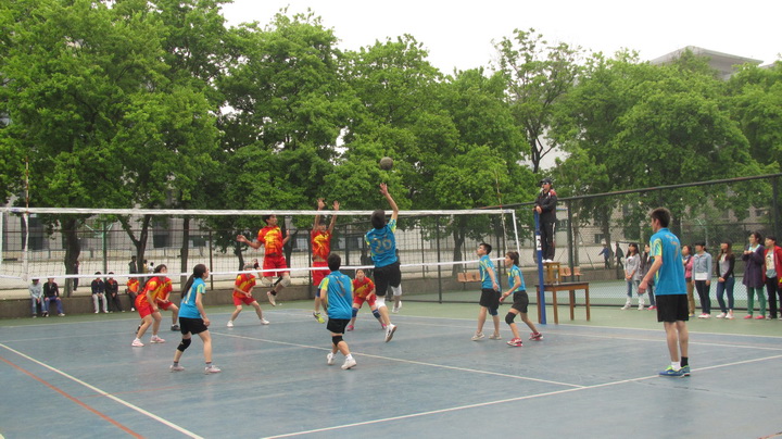 4月16日下午1点30,校42届运动会排球赛决赛准时在排球场开打,由DB彩票 对阵信息院。辅导员殷美率领DB彩票 同学组成强大的啦啦队,为队员呐喊助威。