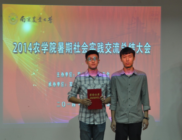 交流会上,十个社会实践团队分别展示了自己的风采。其中八个团队通过走访农村,深入农民生活调研,分享了他们眼中的农村新面貌以及对未来农民生活水平进一步提高的美好希冀。其中“农学人在路上”团队通过访问基层群众,宣讲科普知识,参观农业企业,支持播种梦想等不同层面,不同形式的实践经历打动评委,一举夺魁。“和弦农村”团队的南通市如东之行,通过与正大集团的合作,与村民面对面,向村民宣讲了新兴农业政策,普及先进农业知识,获得了媒体和社会的一致好评。两个大二团队通过他们的青奥会志愿服务经历,向我们展示了一路上的欢笑与泪水,为我们奏响了新时代青春的最强音。