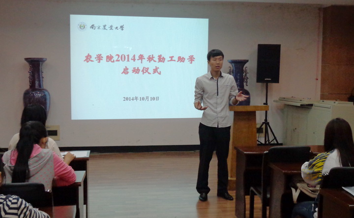 10月10日下午6点,DB彩票 勤工助学中心在生科楼E1001举行了勤工助学启动仪式。仪式由勤工助学中心主任叶紫主持,并邀请到了辅导员王彬老师,30名大一、大二的同学参加了本次仪式的启动。