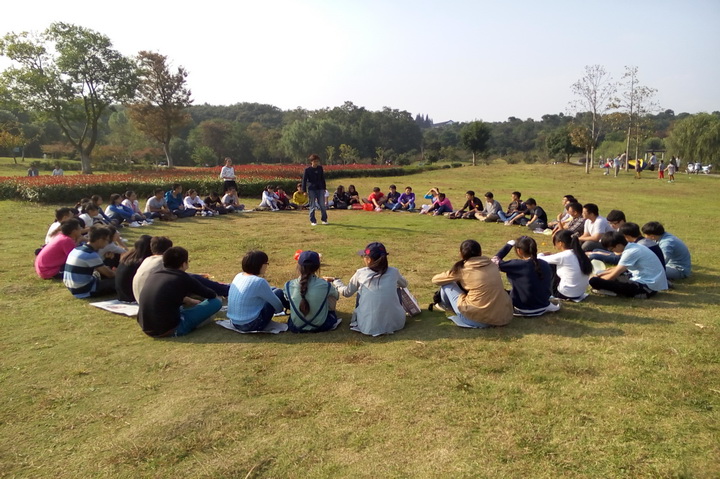 来到博爱园后,两班所有同学围圈席地而坐,通过扑克牌随机选择的方式,大家在轻松愉悦的氛围中自我介绍,并且老乡之间也得到了更深的了解。自我介绍之后,几位同学的才艺展示调动了整个活动的气氛。接着,两班又进行了多个小游戏,活动期间大家一直热情持续高涨,路过的老人孩子也情不自禁的驻足观看。到了答疑环节,初入大学的学弟学妹询问了许多学习生活方面的问题,学长学姐也毫无保留的向他们细心解释。活动结束后,两班同学都依依不舍的离开了公园,并表示以后如果有时间再次相聚。