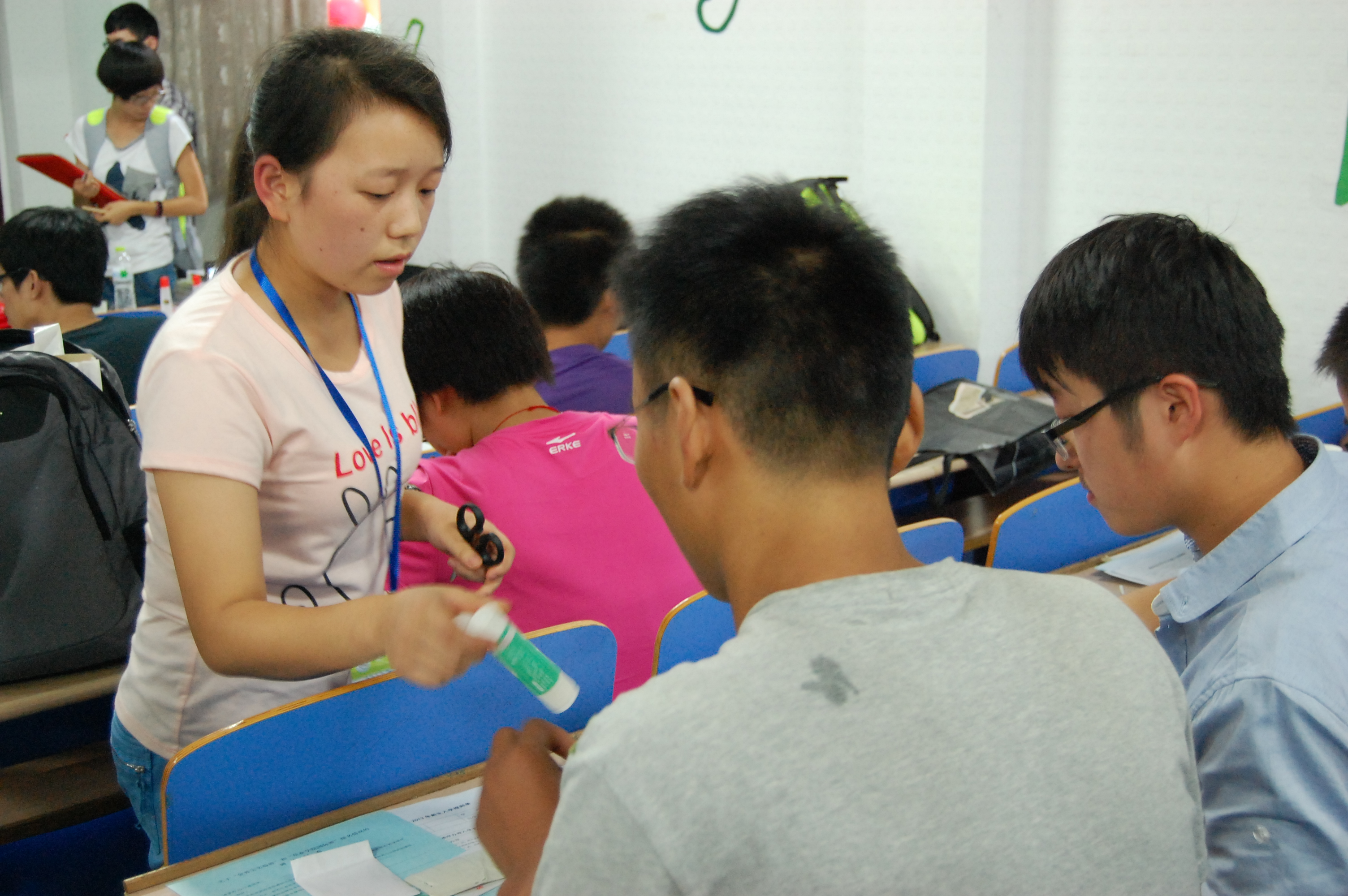 迎新的同学热情地接过家长手中的行李,将其引导至迎新会场家长休息区,并提供了饮用水。发放相关材料的同时,他们一遍遍不厌其烦地向新生及家长讲解报到注册流程,并安排人员全程陪同帮助新生办理入学手续。对于办理完入学手续的同学,工作人员便带领他们到新生宿舍,继续帮助其办理入住登记。整个过程繁琐却井井有条,细心又贴心的服务使新生和家长们感受到DB彩票 大家庭的温暖关怀。
