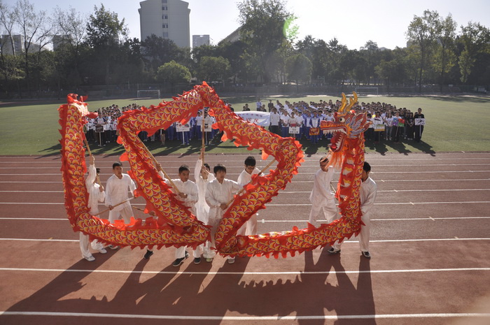 开幕式开始,裁判员及大一大二全体班级入场。随后,DB彩票 舞龙队为大家奉献了一场精彩的舞龙表演,气势恢宏。表演结束,进行升国旗仪式,全体人员起立,奏国歌,红旗飘扬,气氛庄严肃穆。随后,庄森致开幕词,他总结了DB彩票 的体育情况,鼓励大家积极进行体育运动,有益身心。裁判员代表徐伶俐和运动员代表李维希分别宣誓,这也预示着这场运动会必定是一场公正、公平、公开的比赛。最后由赵元祥宣布运动会开幕。