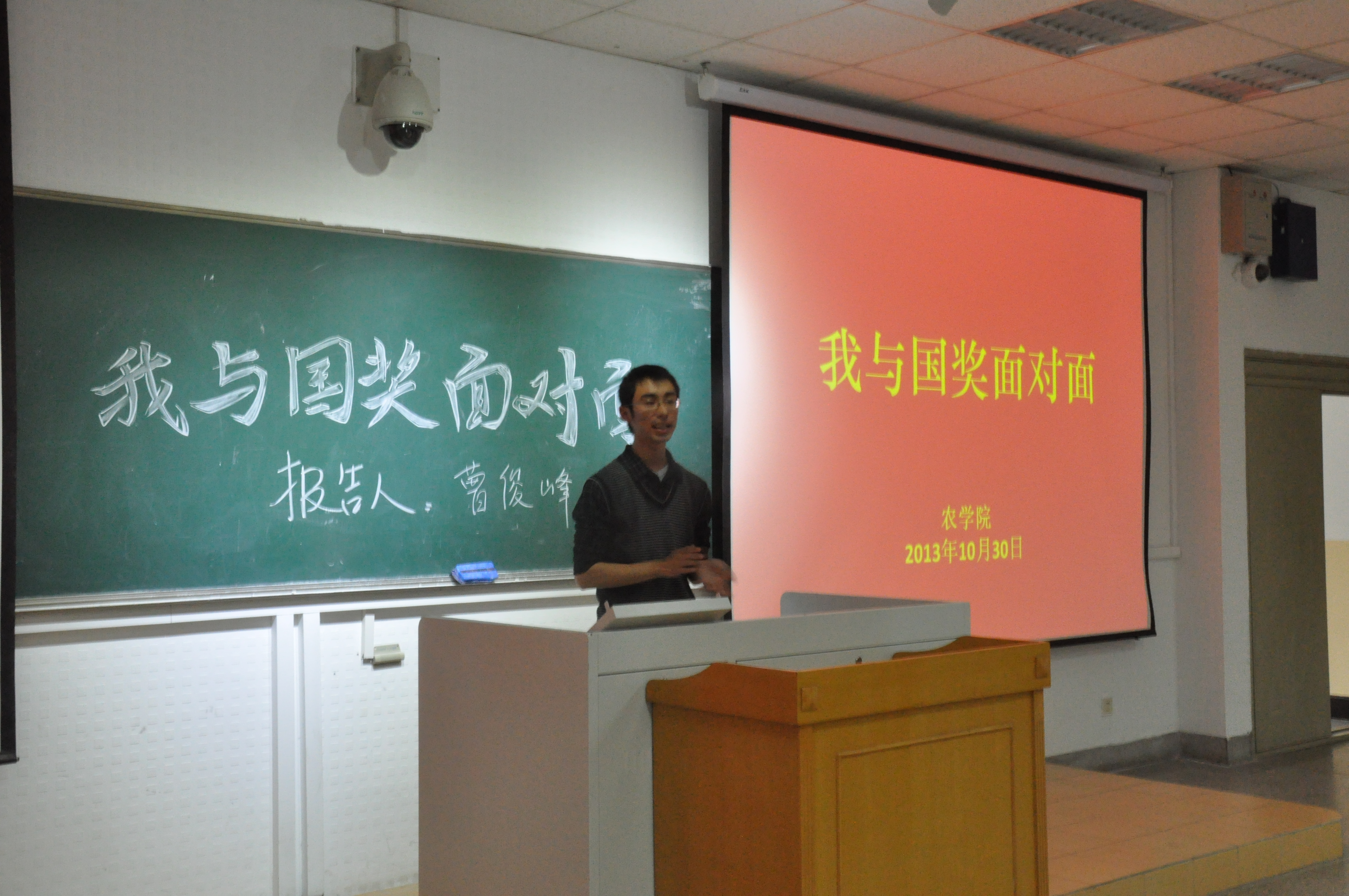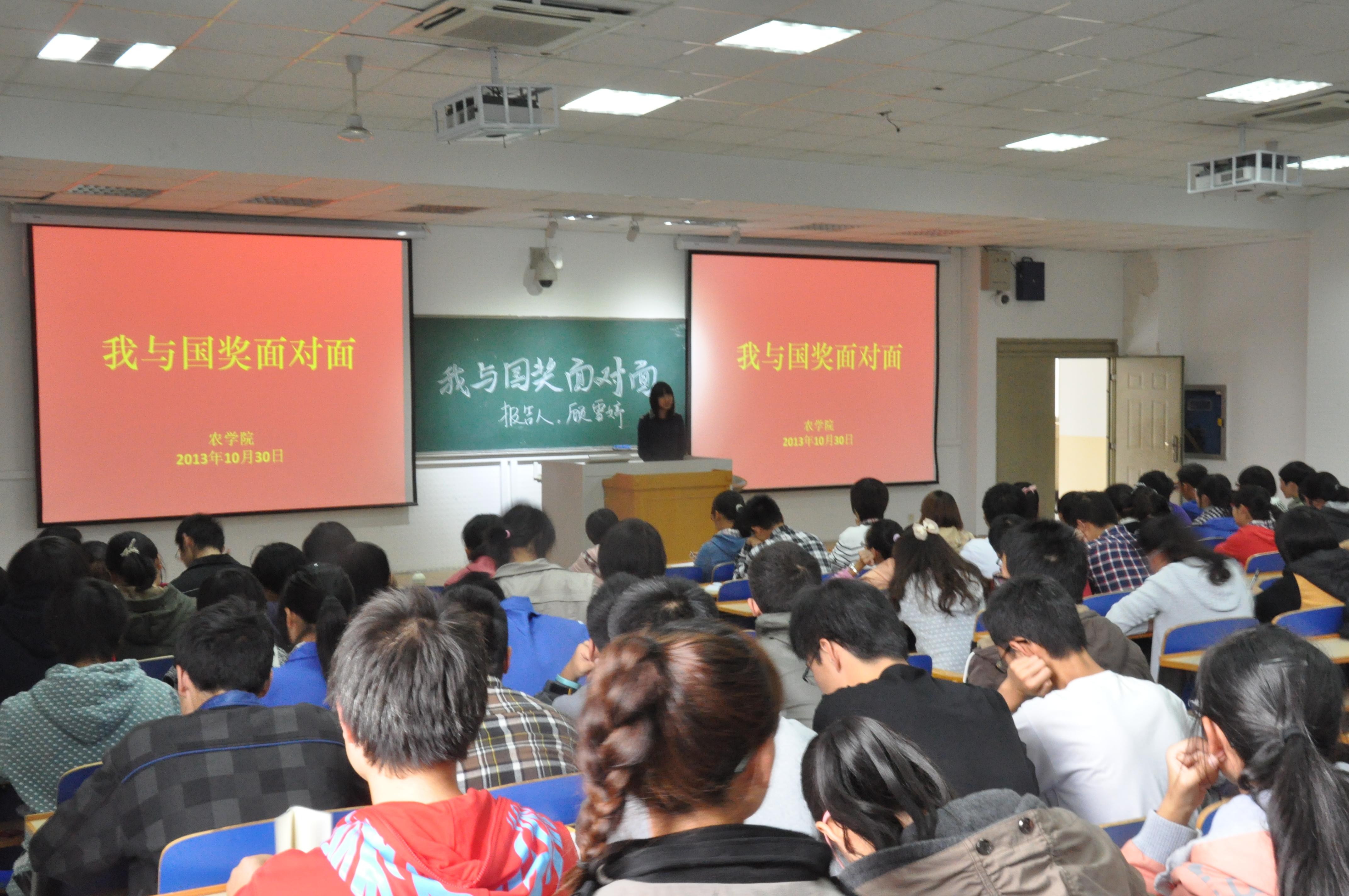 10月30日星期三下午,由DB彩票 团委学生会主办、学习部承办的主题为“我与国奖面对面”主题报告会于教学楼C301举办,这次报告作为一次别开生面的形势与政策课,令大一的同学们都很期待。学习部邀请了今年获得国家奖学金的五位同学为同学们作关于个人学习经验的报告,分别是植物实验111班曹俊峰、农学113班孙彦、农学114班朱星洁、种子112班李霄和植物实验121班顾雪婷。出席的有DB彩票 大一同学及辅导员彭益全。