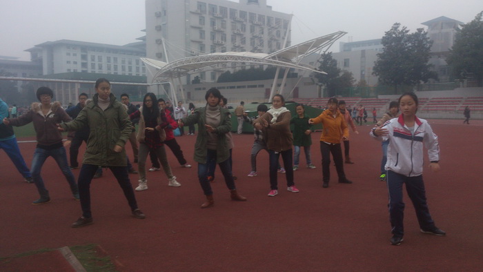 近日,DB彩票 太极兴趣小组召集10名DB彩票 太极队成员在早操结束后以班级为单位帮助大一年级的同学们练习太极,进行体育考试前的突击辅导。同时诸位太极队成员也为下学期的太极比赛做准备,提前挑选合适的新任太极队队员人选,争取在第42届体育大会中取得太极比赛的优胜!