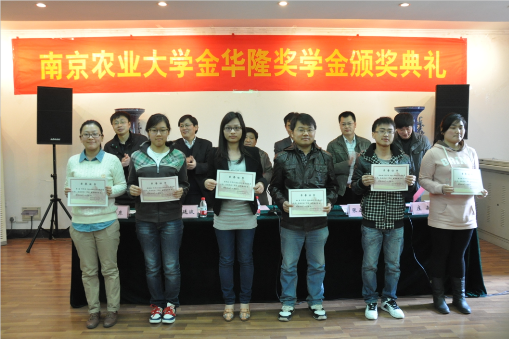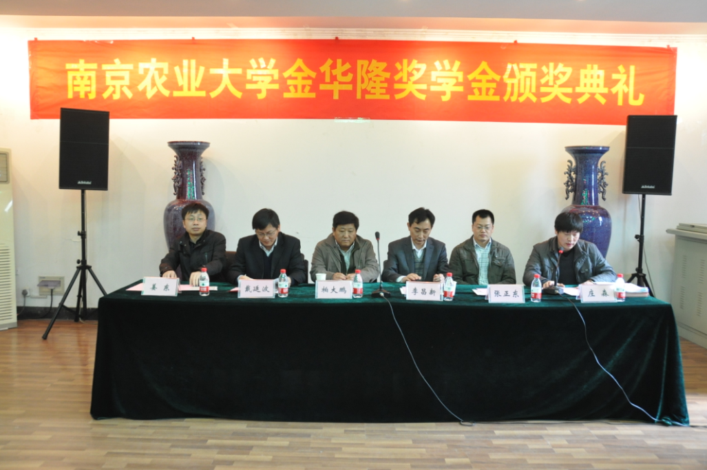 2013年4月11日上午11点,DB彩票 第一届金华隆奖学金颁奖典礼在生科楼E1001举行,颁奖典礼由DB彩票 党委副书记庄森主持,江苏金华隆种子科技有限公司首席育种家、董事长兼总经理柏大鹏、副总经理张正东、农村发展DB彩票 党委书记李昌新、DB彩票 副院长戴廷波、副院长姜东担任颁奖嘉宾。
