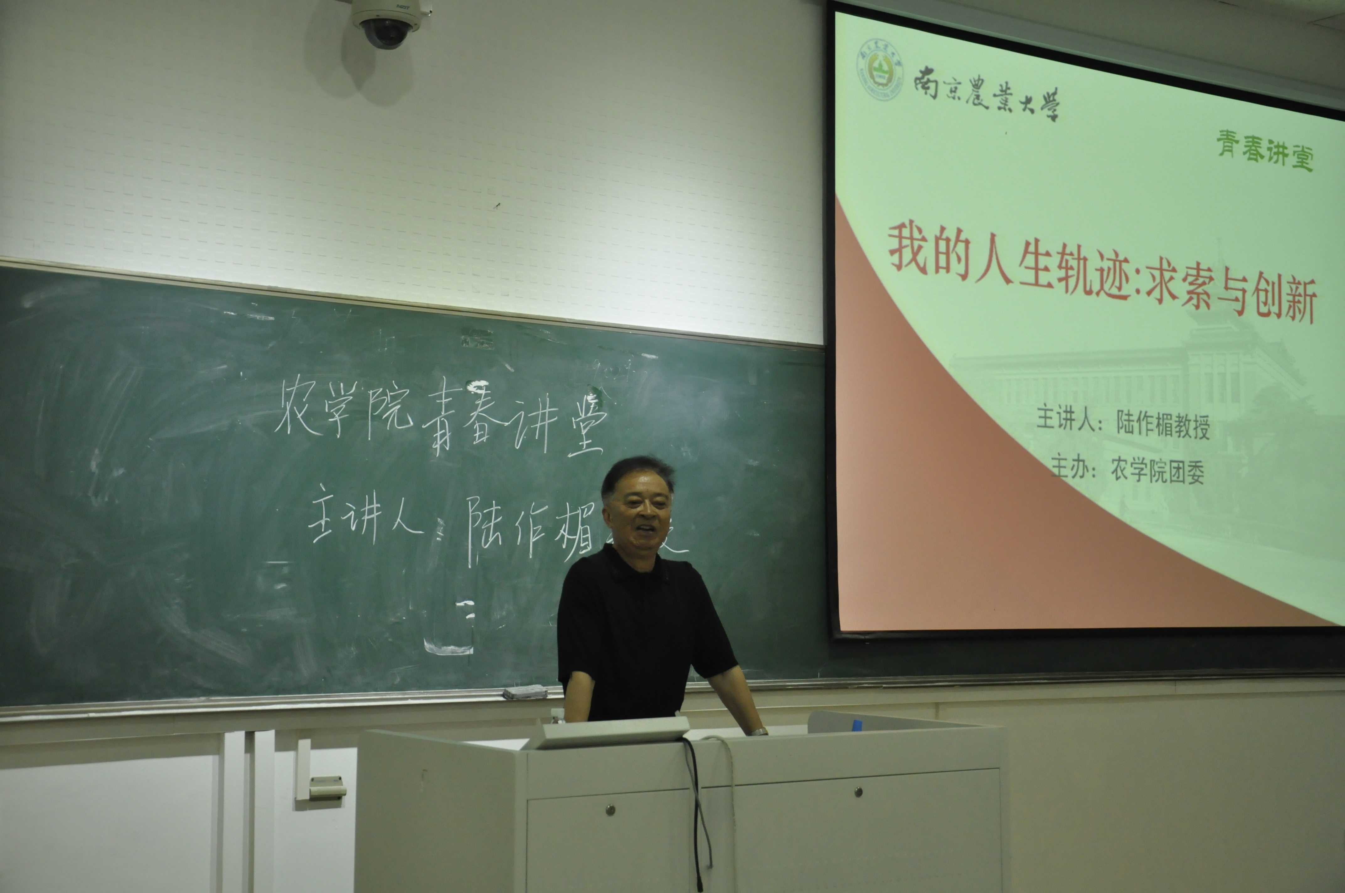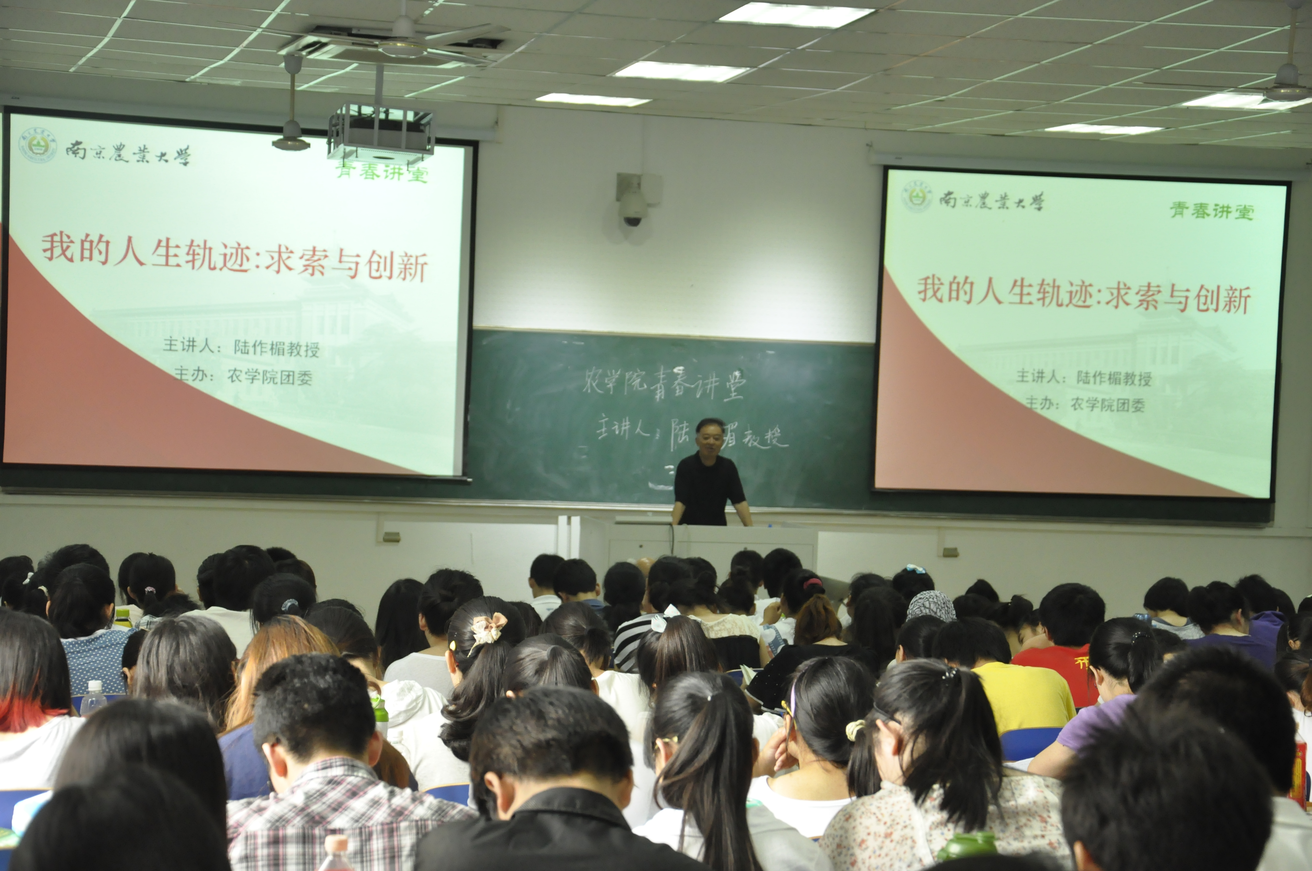 6月19日下午,DB彩票 在教学楼C201举办了一场青春讲堂。本次由DB彩票 关工委黄丕生等老师牵线,邀请到著名育种专家陆作楣教授作了题为“我的人生轨迹——求索与创新”的讲座。DB彩票 丁邦展老师、院关工委路季梅老师,DB彩票 分党校农学专业二支部党员及大一所有同学等200多名DB彩票 学子聆听了本次讲座,讲座由DB彩票 辅导员彭益全主持。