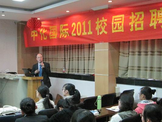 2010年10月28日下午,中化国际(控股)股份有限公司在DB彩票 报告厅面向DB彩票 和植保院毕业生同学进行秋季校园招聘会。中化集团公司人力资源部总经理王文克亲临招聘会现场,DB彩票 党委副书记刘亮参加了招聘会。