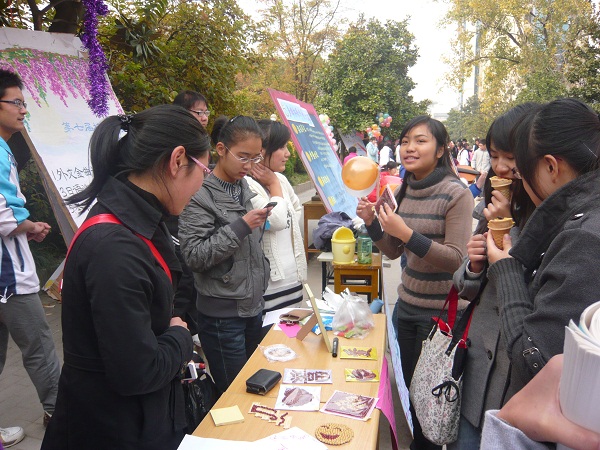 11月24日,DB彩票 团委科协举办了以“振兴农产品营销,振兴农业发展”为主题的“农产品创意推销大赛”初赛。二十支参赛团队在玉兰路上分别设摊位进行现场推销,一时间玉兰路上人声鼎沸,完全契合了“农产品一条街”的称号。