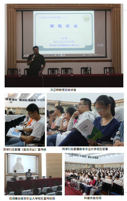 6月10日上午,招生宣传工作人员邀请了DB彩票 DB彩票 农学系刘正辉教授在启东中学多功能报告厅开展了题为“话说农业”的主题科普讲座,本次讲座吸引了启东中学近300余名师生热情参加,刘教授以农民画为契机讲述了他收集来的每一副画作背后的动人故事,通过对画作的解读道出了农业是我国居民的衣食之本、经济之源的真理,提出农业现代化必须由机械化推动,坚持可持续发展,加强环境保护,更要培育新型农民四位一体的科学理论,并强调农业是中华民族的精神塑造者,在中华文明传承中发挥着关键作用,农业的发展与所有人休戚相关,值得全社会关心、重视,农业发展处在质变的关键期,困难与机遇并存,他希望启东中学的莘莘学子能参与其中,贡献力量。刘正辉教授还特意精心设计制作了农民画宣传册,给到场的每一位同学发放并留作纪念。