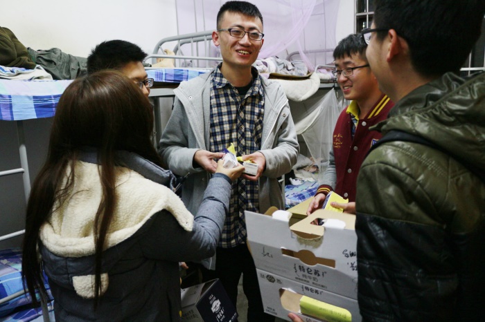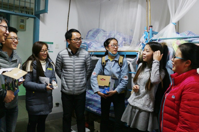 12月1日晚,DB彩票 本科生辅导员和DB彩票 团委学生会成员一起,进入每个宿舍,为每一位考研的同学送去冬日的温暖。