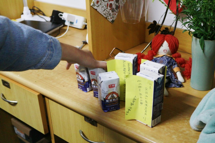 “天道酬勤,何事难为”“祝学姐考上理想院校”……牛奶盒上贴着学弟学妹们激励祝福的话语,考研的同学们也表示他们感受到了DB彩票 和学弟学妹们的关心,看到学弟学妹们的祝福,考研更加有动力了。